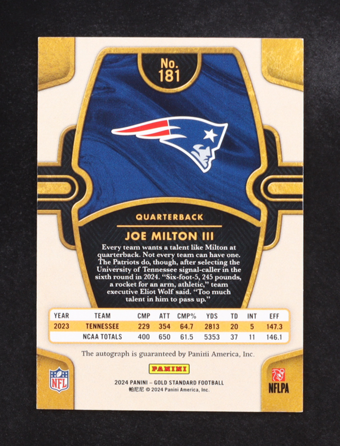 Joe Milton III 2024 Panini Gold Standard Rookies Autographs Platinum #181 #27/99 RC