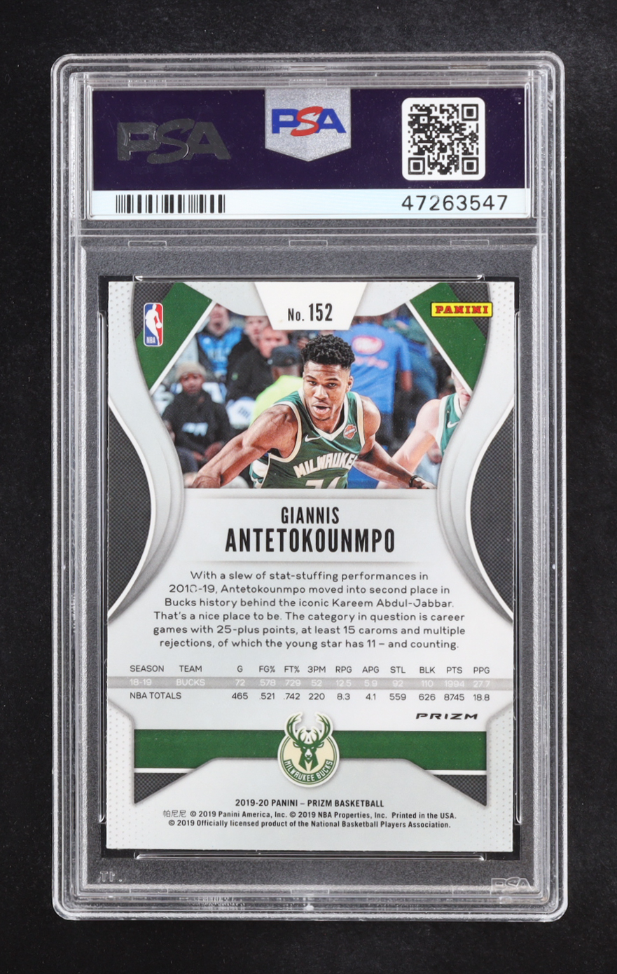 Giannis Antetokounmpo 2019-20 Panini Prizm Prizms Green #152 (PSA 9)
