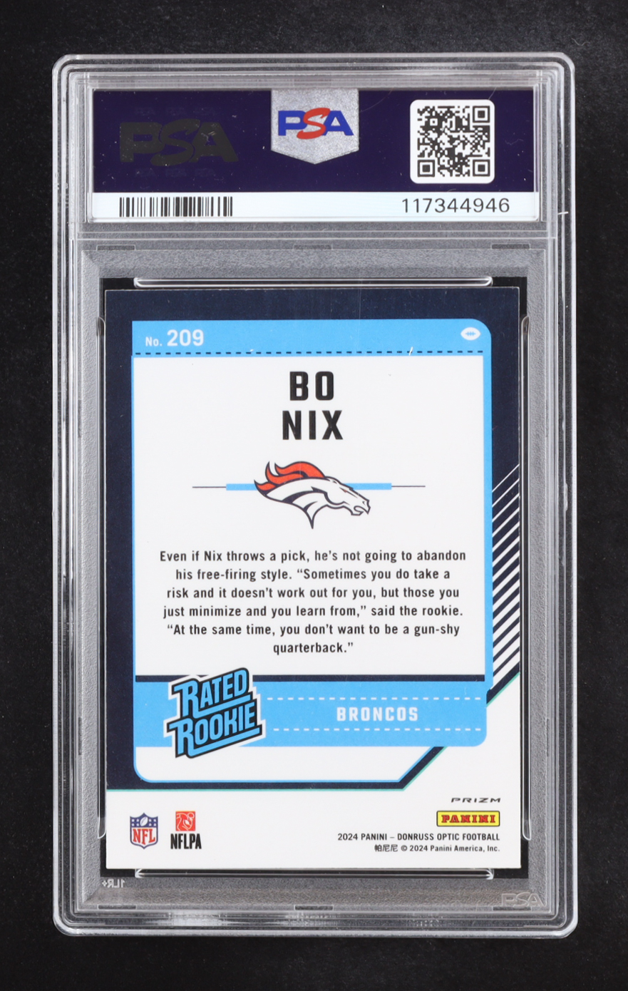 Bo Nix 2024 Donruss Optic Holo #209 RR RC (PSA 9)