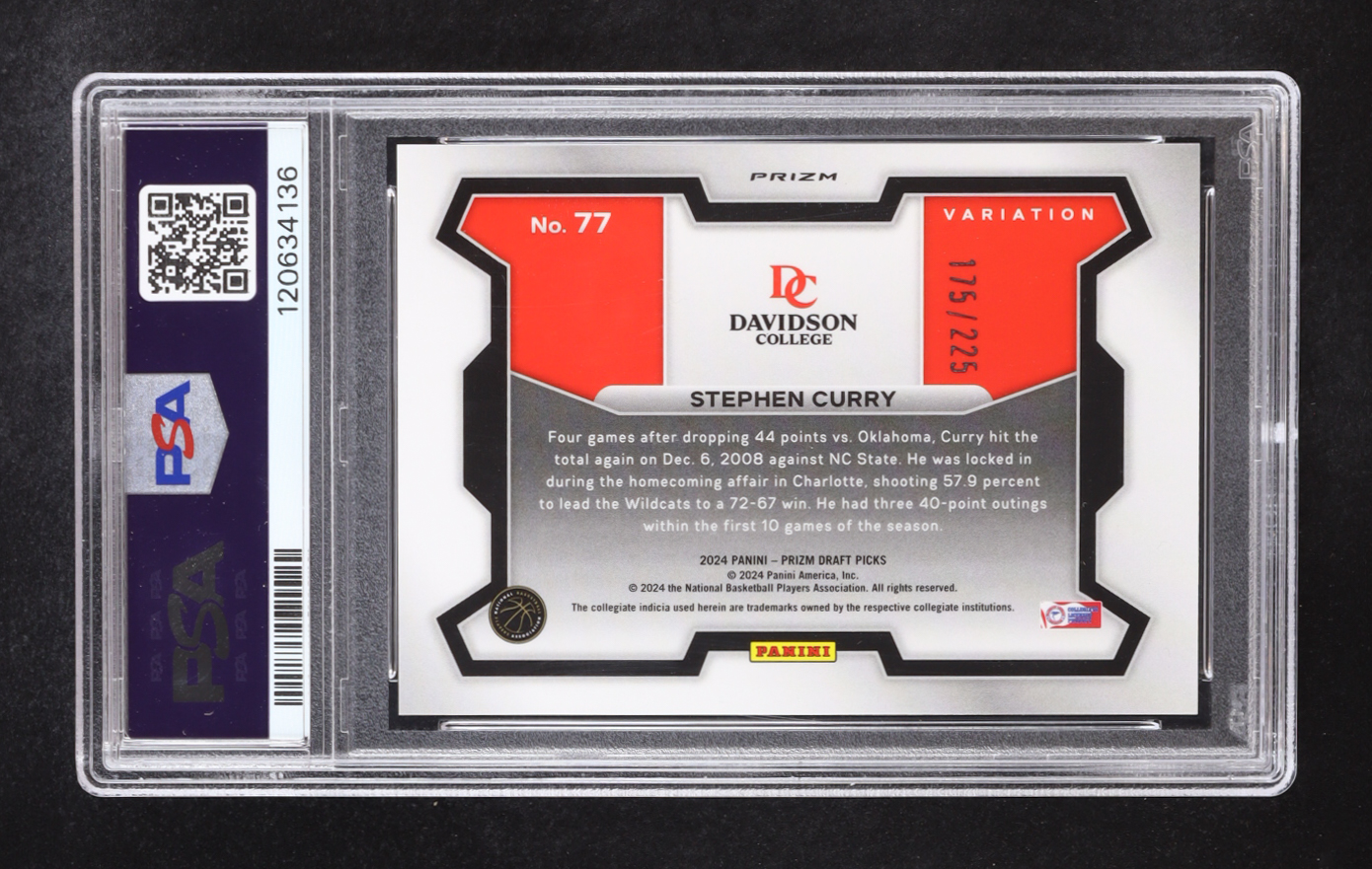 Stephen Curry 2024-25 Panini Prizm Draft Picks Variation Prizms Red Seismic #77 #175/225 (PSA 9)
