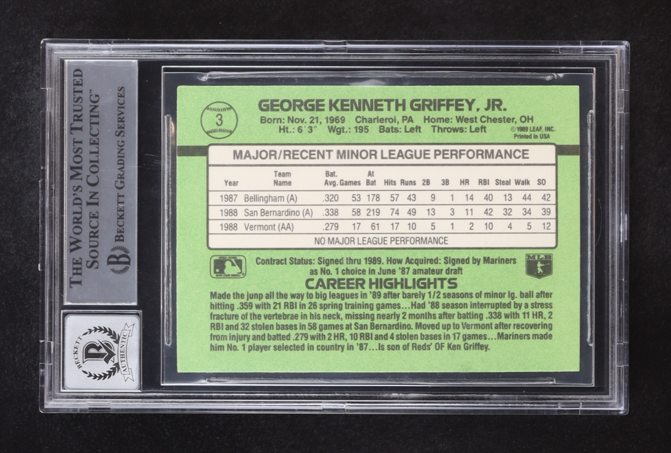 Ken Griffey Jr. Signed 1989 Donruss Rookies Autographs #3 RC (Beckett | Autograph Graded BGS 10)