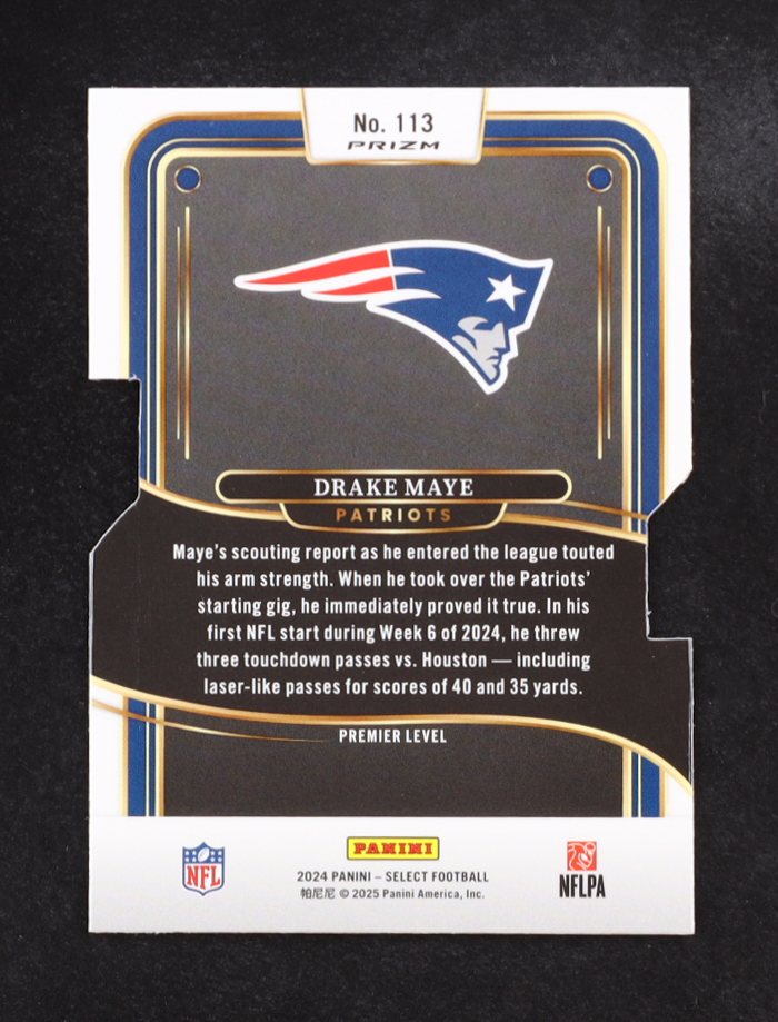 Drake Maye 2024 Select Prizm Silver Die Cut #113 RC