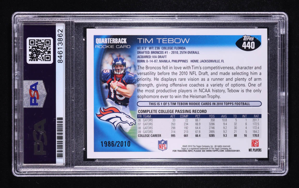 Tim Tebow Signed 2010 Topps Gold #440 #1986/2010 RC (PSA | Auto 10)