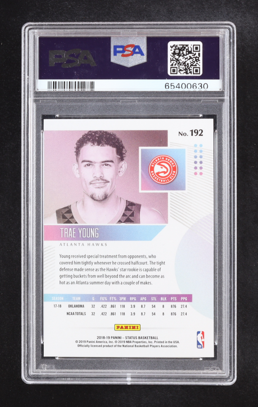 Trae Young 2018-19 Panini Status Purple #192 RC (PSA 10)