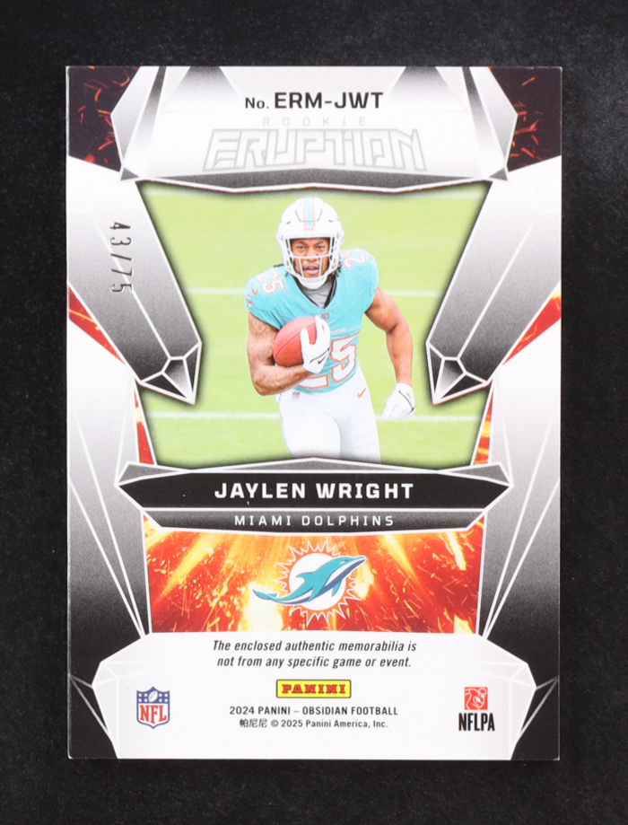 Jaylen Wright 2024 Panini Obsidian Rookie Eruption Materials Red #22 #43/75 RC