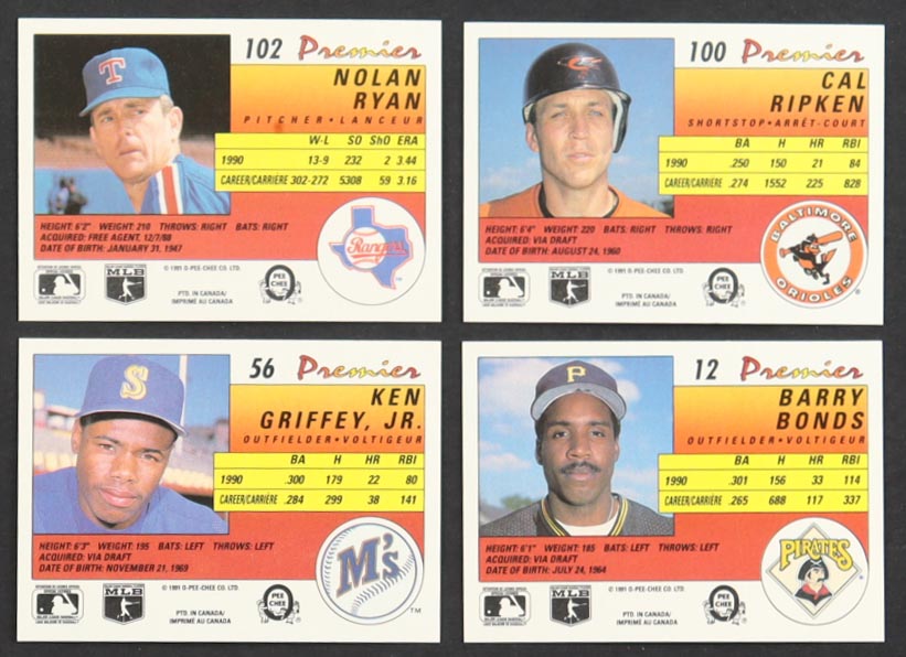 1991 O-Pee-Chee Premier Baseball Complete Set of (132) Cards Including Cal Ripken #100, Nolan Ryan #102, Ken Griffey Jr. #56, Barry Bonds #12