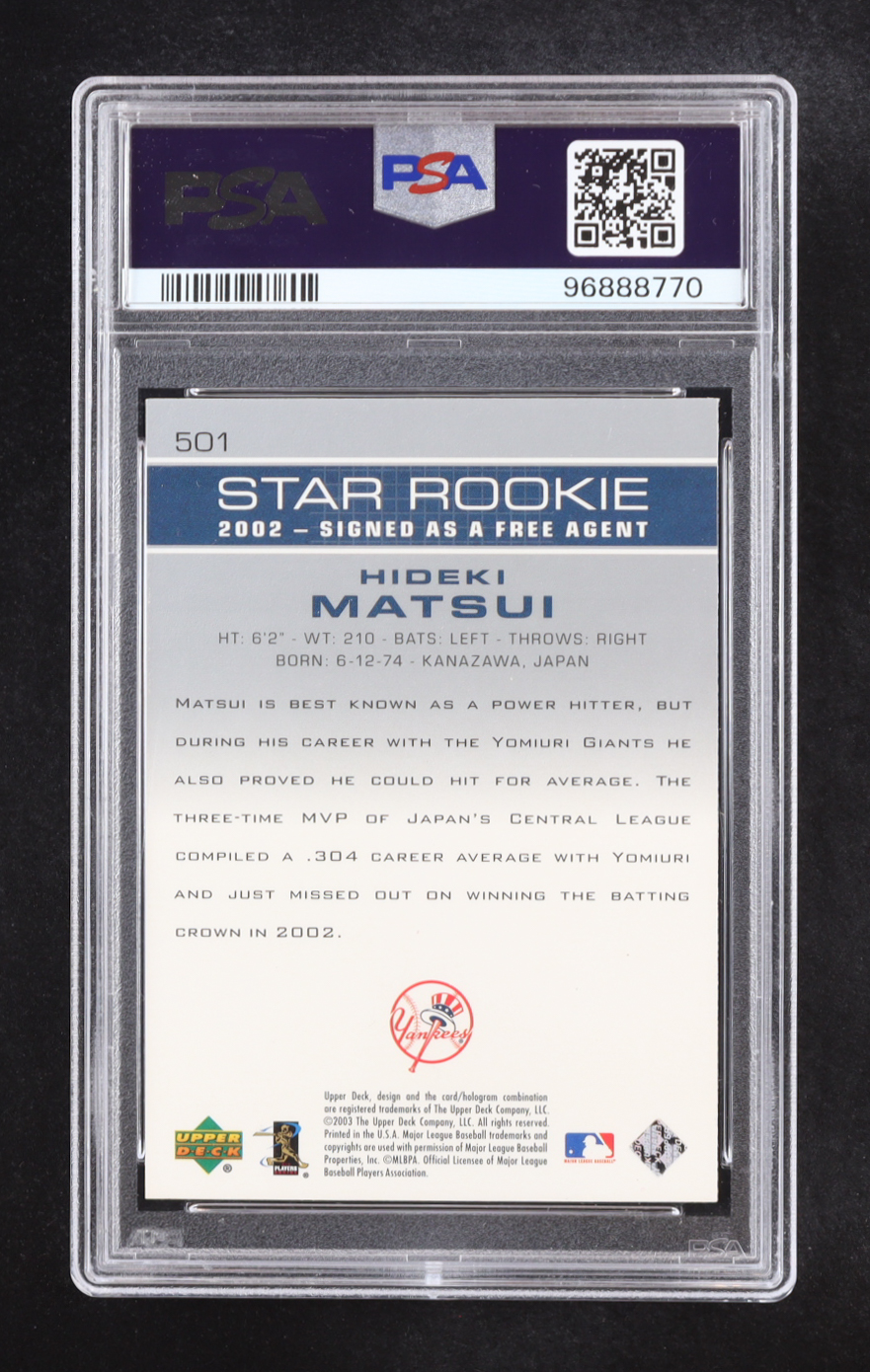 Hideki Matsui 2003 Upper Deck #501 SR RC (PSA 5)