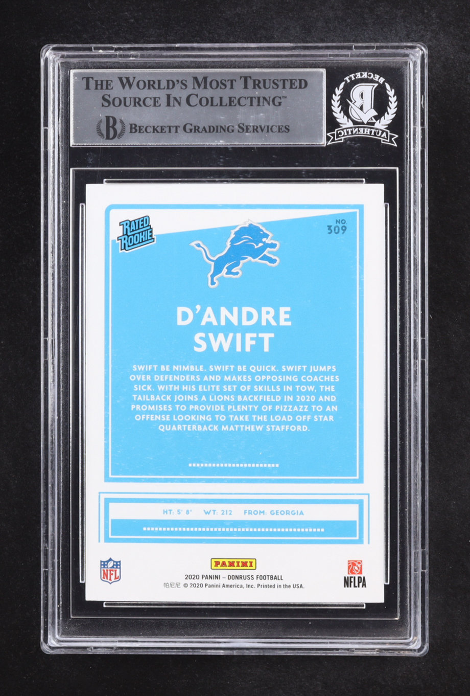 D'Andre Swift Signed 2020 Donruss RR Autographs #309 RC (BGS)