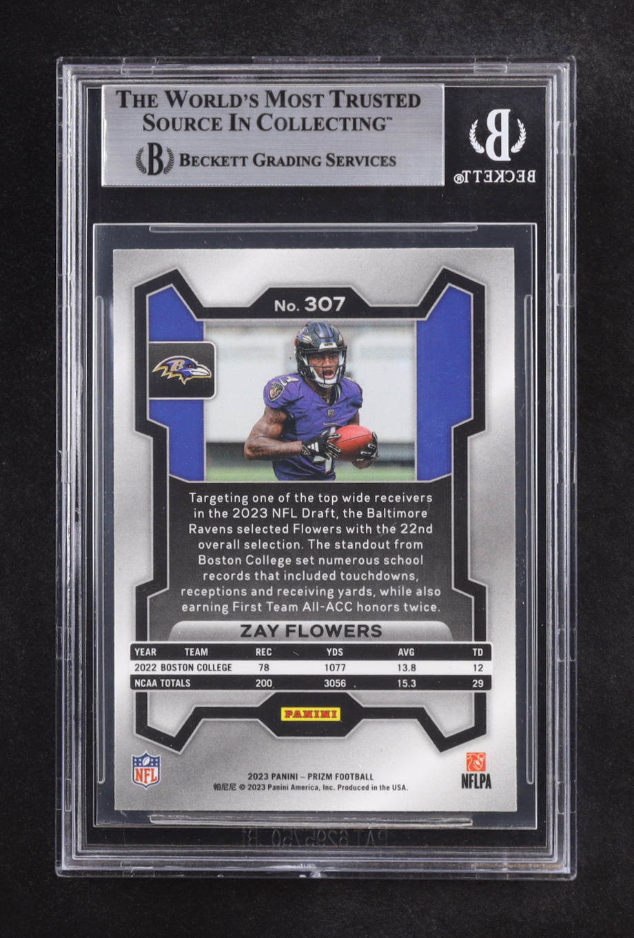 Zay Flowers Signed 2023 Panini Prizm Autographs #307 RC (BGS)