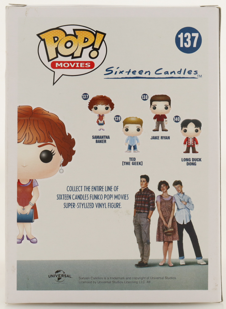 Funko pop! vinyl figure measures approximately 4" tall and has been hand-signed on the packaging by Molly Ringwald (Samantha Baker).