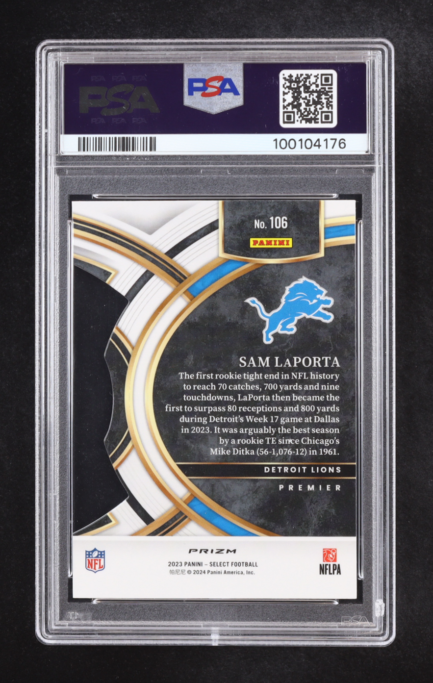 Sam Laporta 2023 Select Die-Cut Red & Yellow Prizm #106 RC (PSA 8)