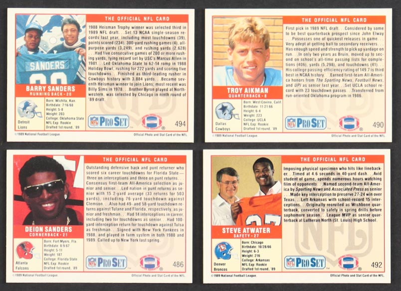 1989 Pro Set Complete Set of (561) Football Cards with Michael Irvin #89, Bo Jackson #185, Jerry Rice #383, Thurman Thomas #32