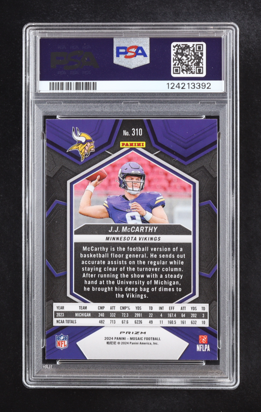 J.J. McCarthy 2024 Panini Mosaic #310 RC (PSA 9)