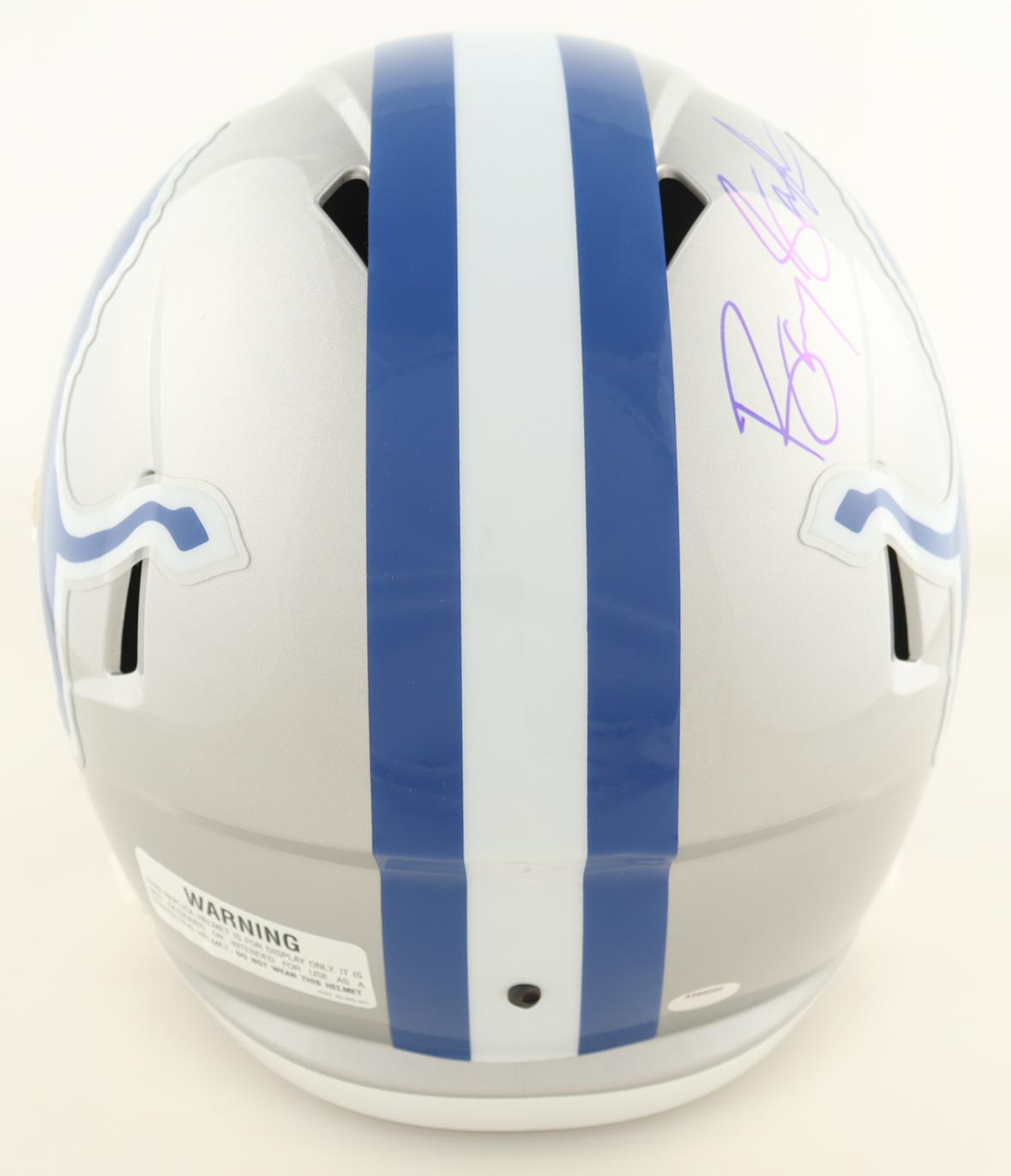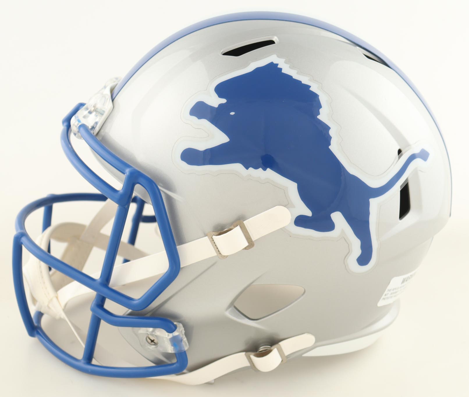 Riddell Detroit Lions full-size replica Throwback speed helmet has been hand-signed by Barry Sanders (HOF).