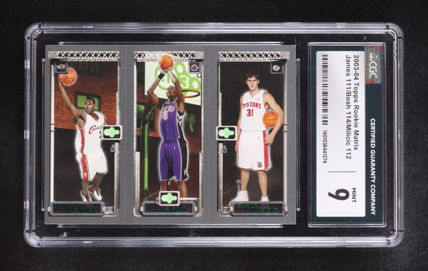 LeBron James 111 / Chris Bosh 114 / Darko Milicic 112 2003-04 Topps Rookie Matrix #JBM RC (CGC 9)
