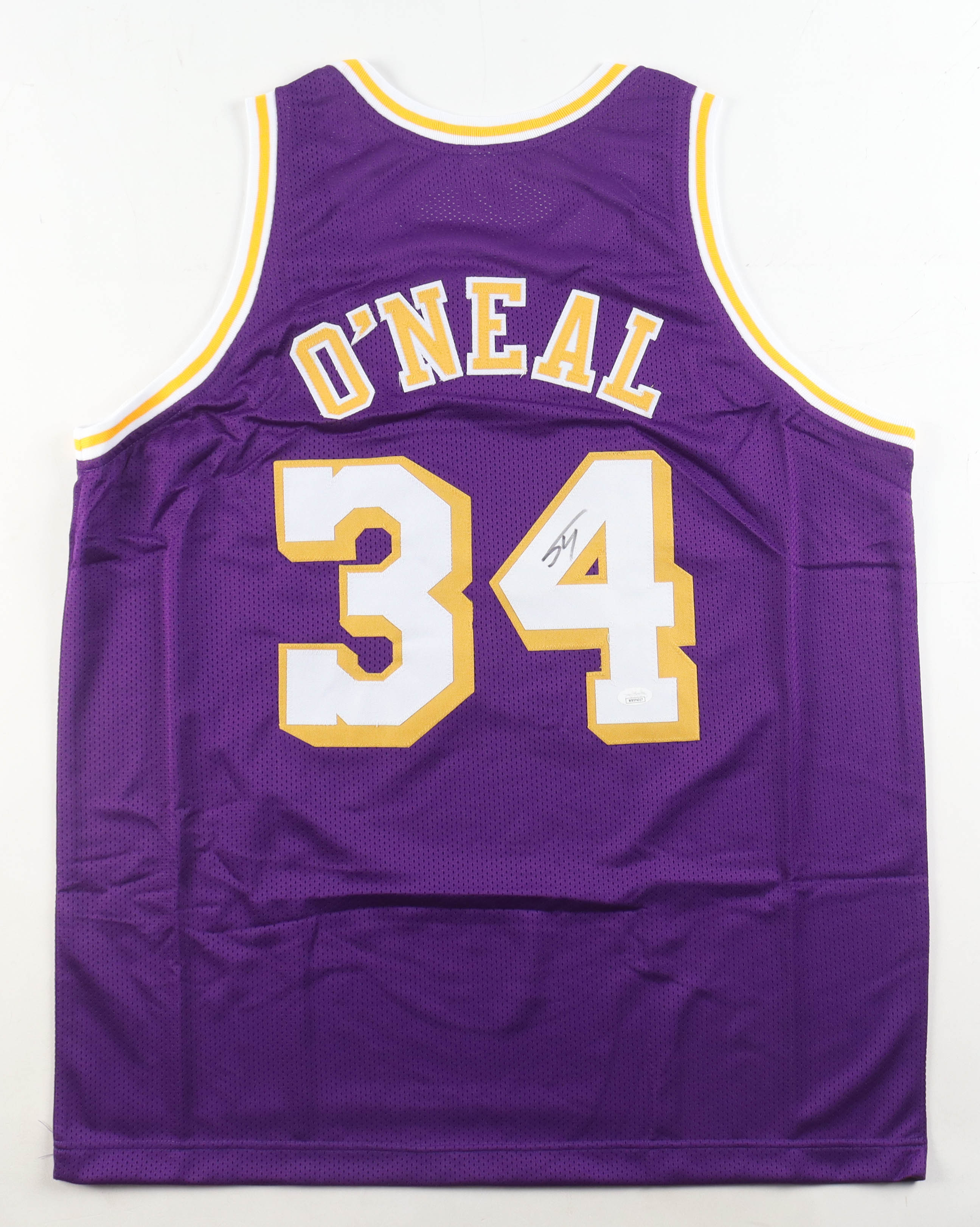 Custom jersey with everything sewn on, size XL. Hand-signed by Shaquille O'Neal (HOF).