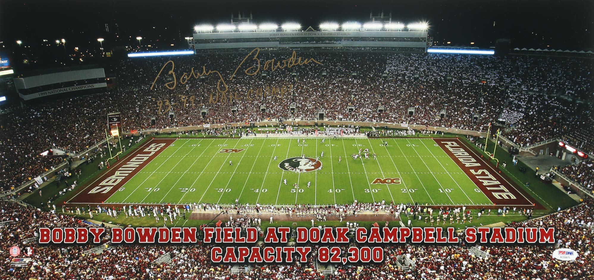 Bobby Bowden Signed Florida State Seminoles 12x25 Photo Inscribed "'93 - '99 Natl Champs" (PSA)