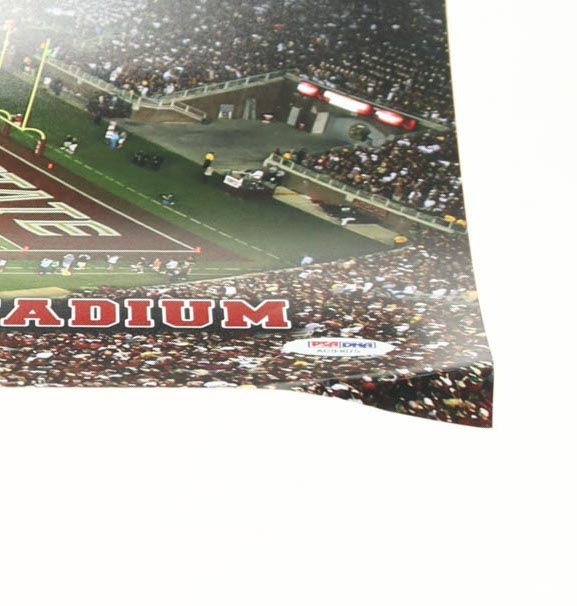 Photo measures 12" x 25" in size and has been hand-signed and inscribed by Bobby Bowden (D. 2021). Please note, the bottom right corner of the photo is creased.