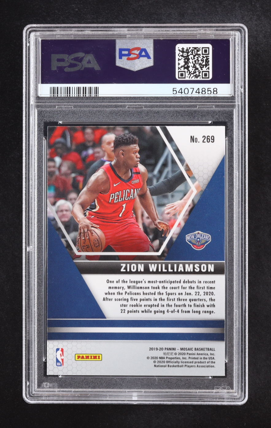 Zion Williamson 2019 Panini Mosaic NBA Debut #269 RC (PSA 9)