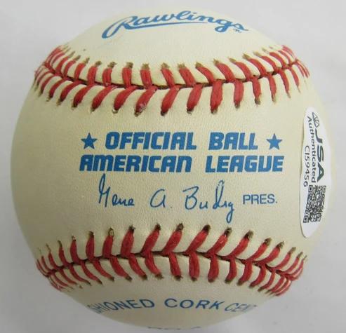 Rawlings Official American League baseball has been hand-signed and inscribed by Jim Palmer (Baltimore Orioles, HOF).