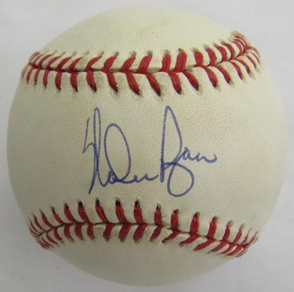 Rawlings Official American League Baseball. Hand-signed by Nolan Ryan (Texas Rangers, HOF). Please note, the baseball is naturally toned.