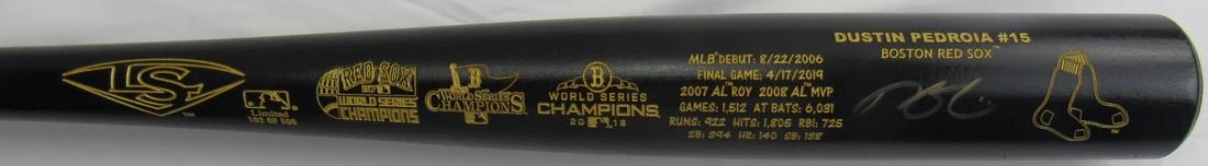 Rawlings Commemorative baseball bat has been hand-signed by Dustin Pedroia (Boston Red Sox).