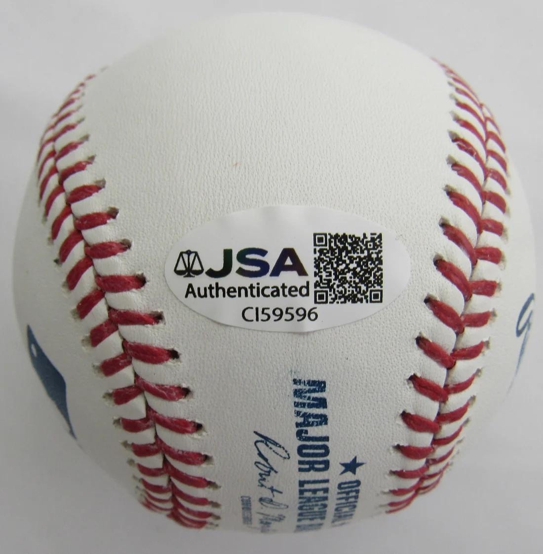 Giancarlo Stanton Signed OML Baseball Inscribed "17 NL MVP" (JSA)