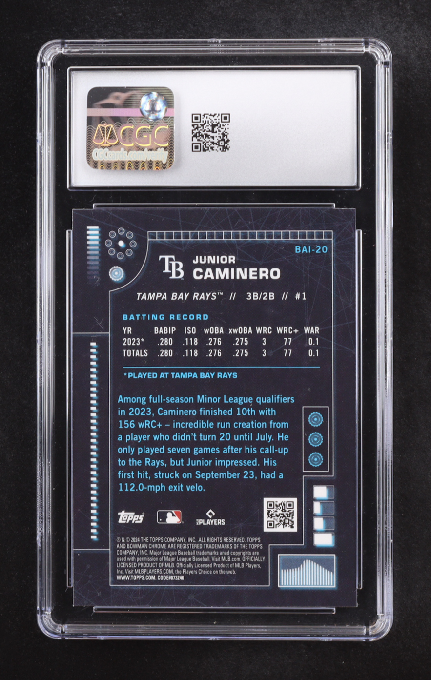 Junior Caminero 2024 Bowman Chrome A.I. #BAI-20 RC (CGC 10)