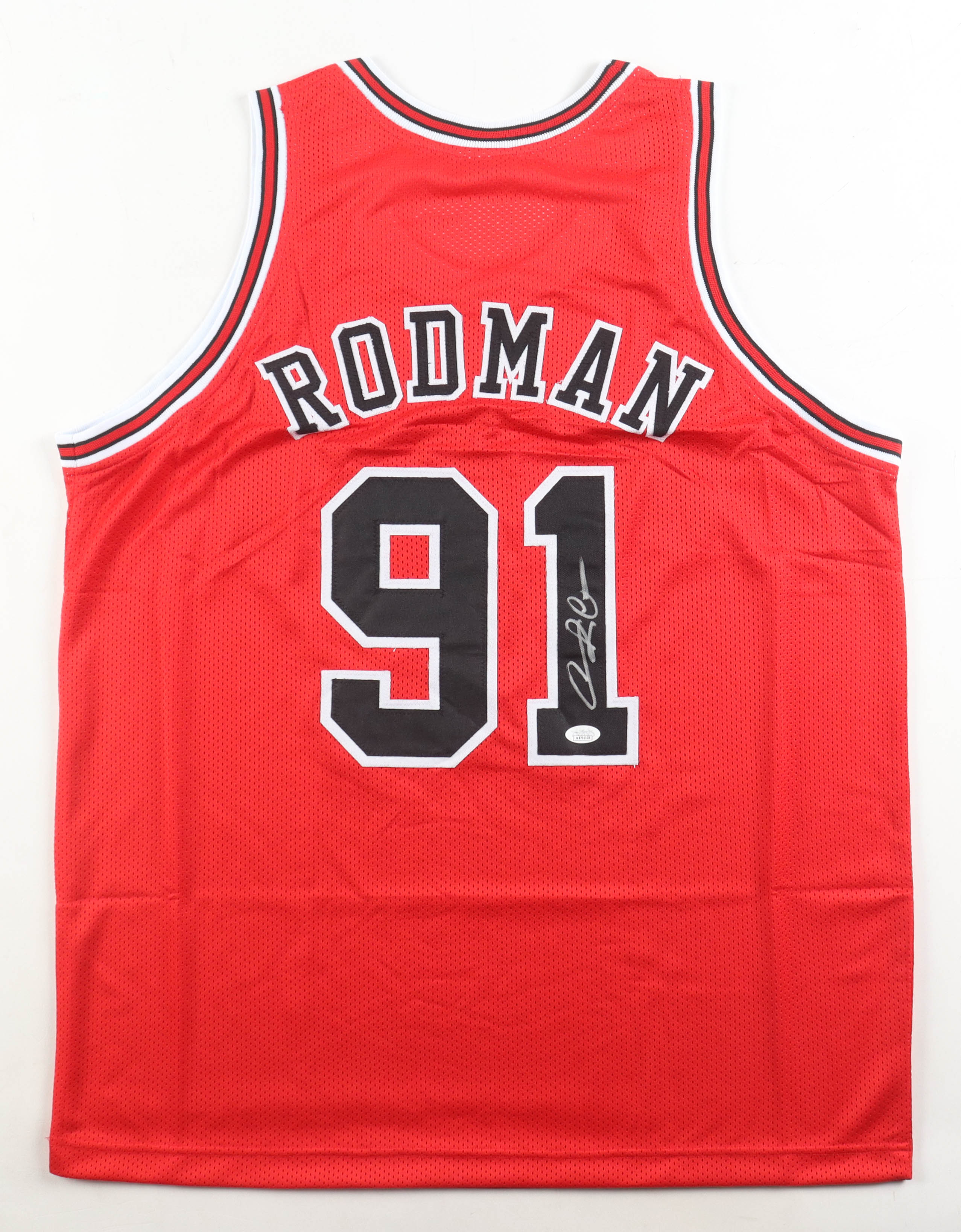 Custom jersey with everything sewn on, size XL. Hand-signed by Dennis Rodman (HOF).