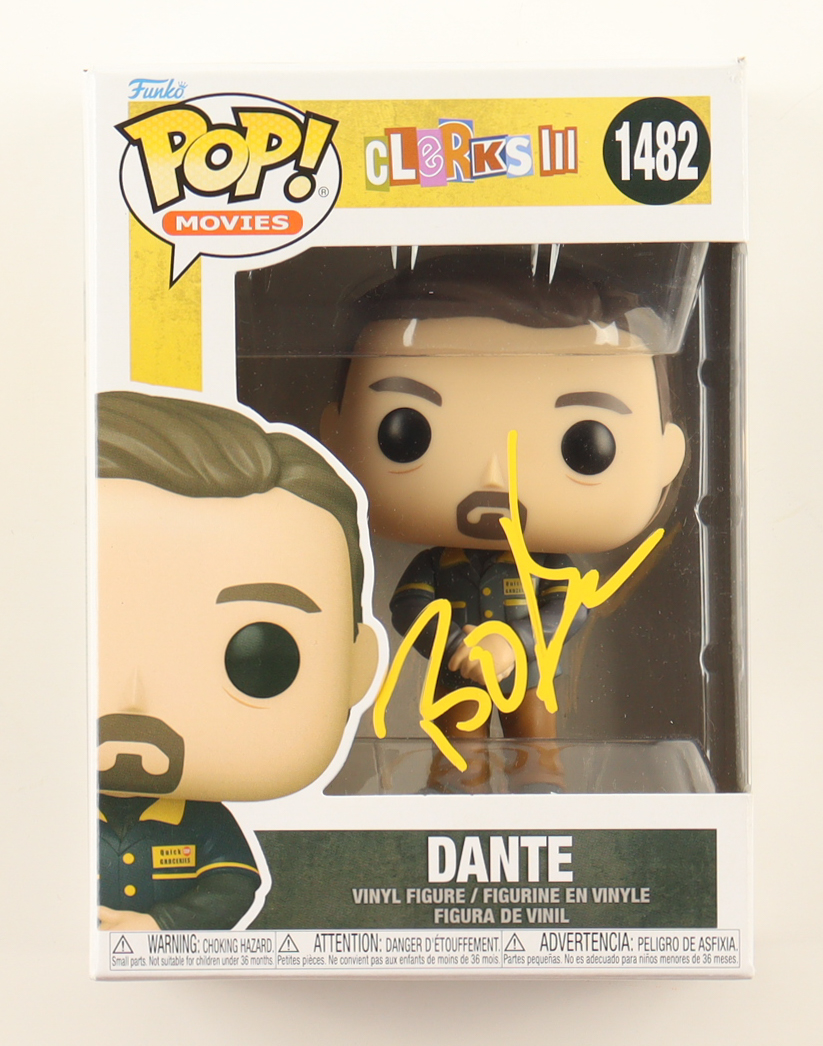 Funko pop! vinyl figure measures approximately 4" tall and has been hand-signed on the packaging by Brian O'Halloran (Dante). Please note that the original packaging shows signs of wear.