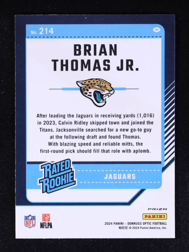 Brian Thomas Jr. 2024 Donruss Optic Blue Hyper #214 RR RC