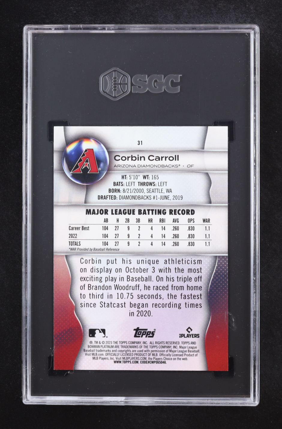 Corbin Carroll 2023 Bowman Platinum Ice Foil #31 RC (SGC 9)