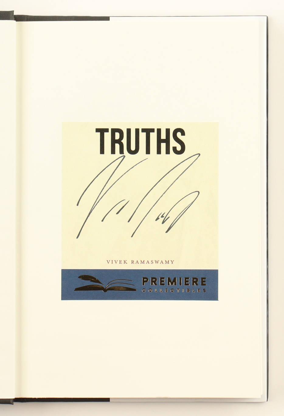 "Truths: The Future of America First" Hardcover Book. Hand-signed on the inside title page by Vivek Ramaswamy. Please see photos for details regarding the condition of the item.