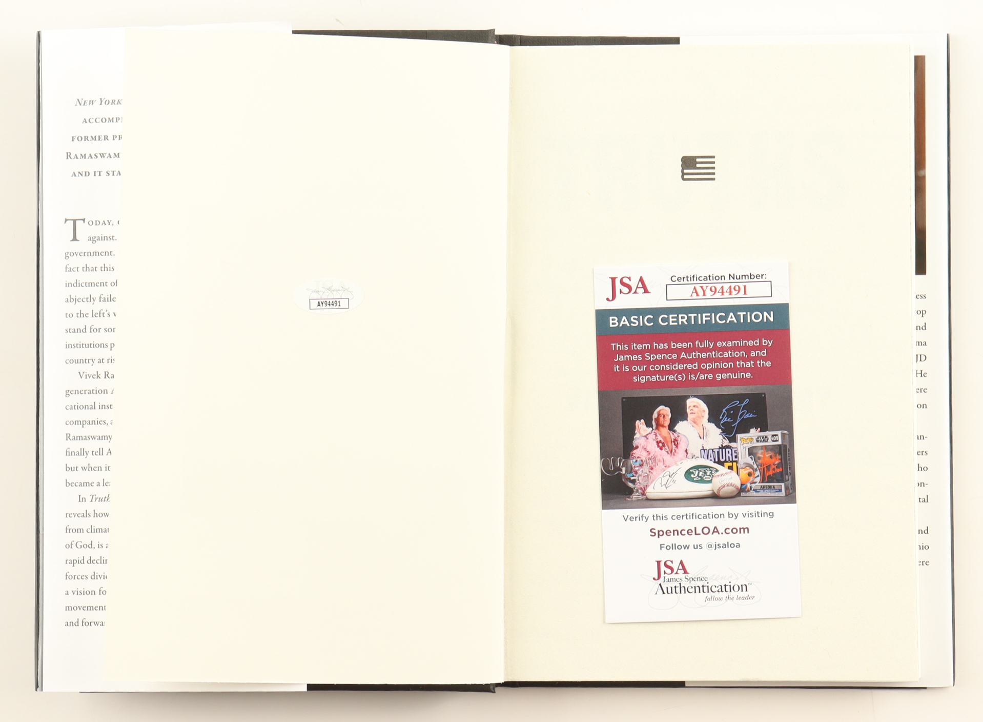 Vivek Ramaswamy Signed "Truths: The Future of America First" Hardcover Book (JSA)