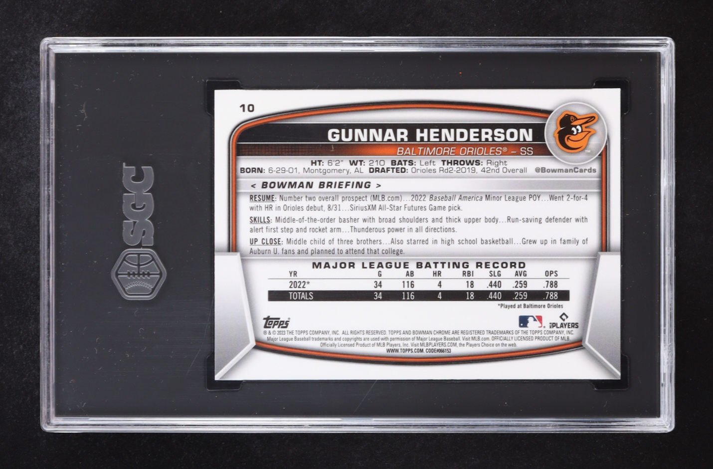 Card has been graded (SGC) 9.5. Please see photos for details regarding the condition of the card (Baltimore Orioles).
