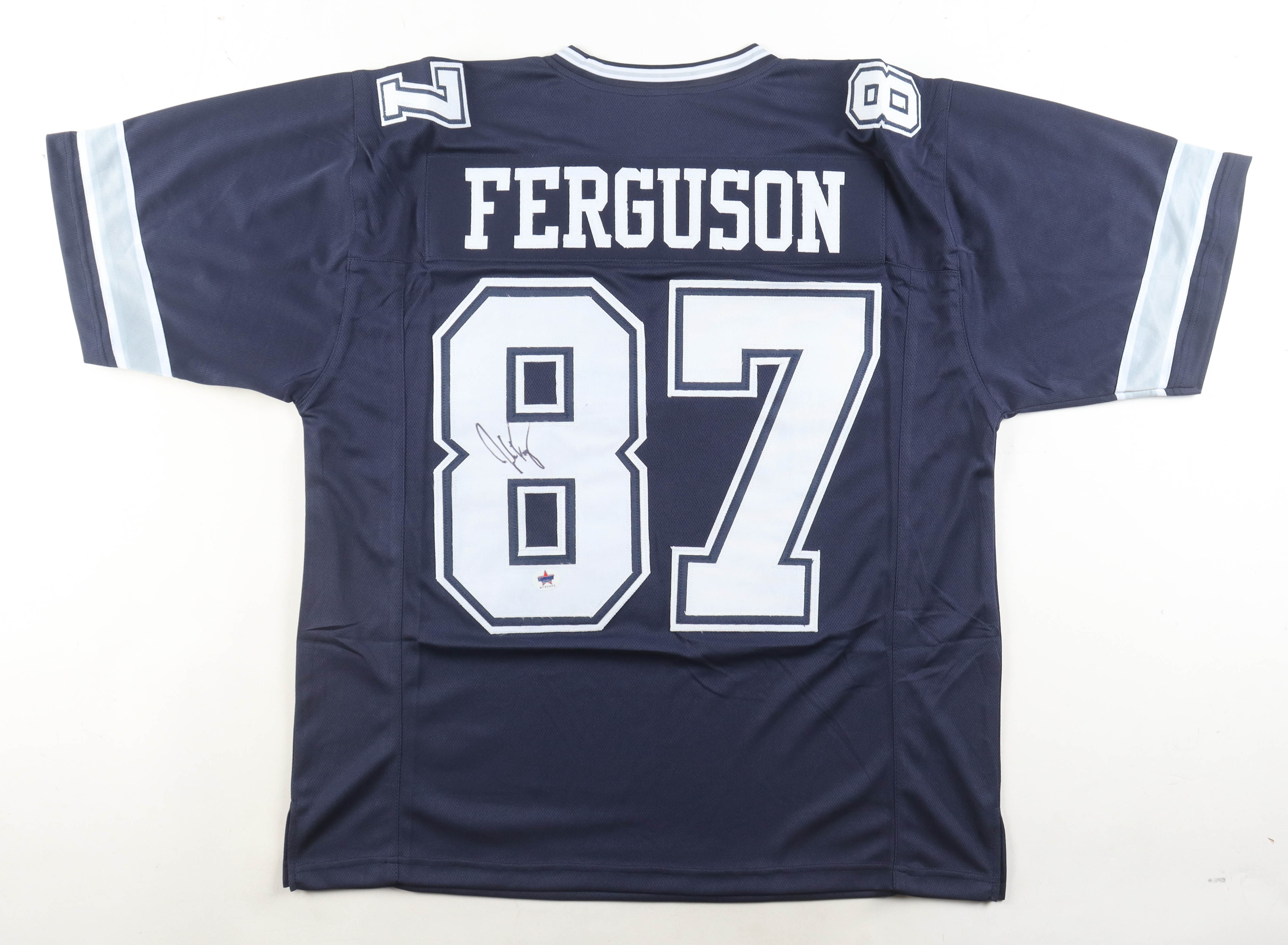 Custom jersey with everything sewn on, size XL. Hand-signed by Jake Ferguson. Please note, there is a stray ink mark on the reverse number and glue is visible. See photos regarding the condition of the item.