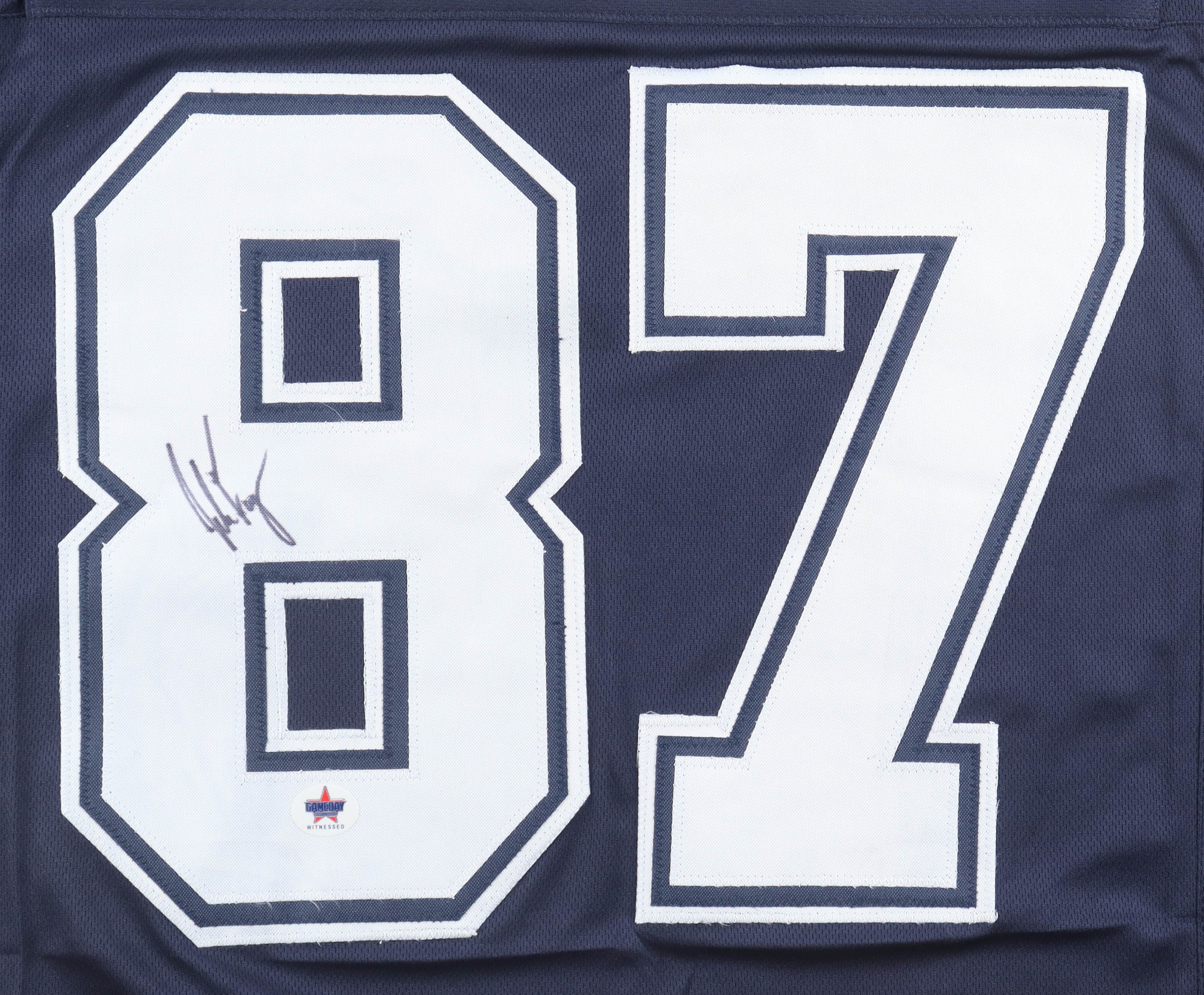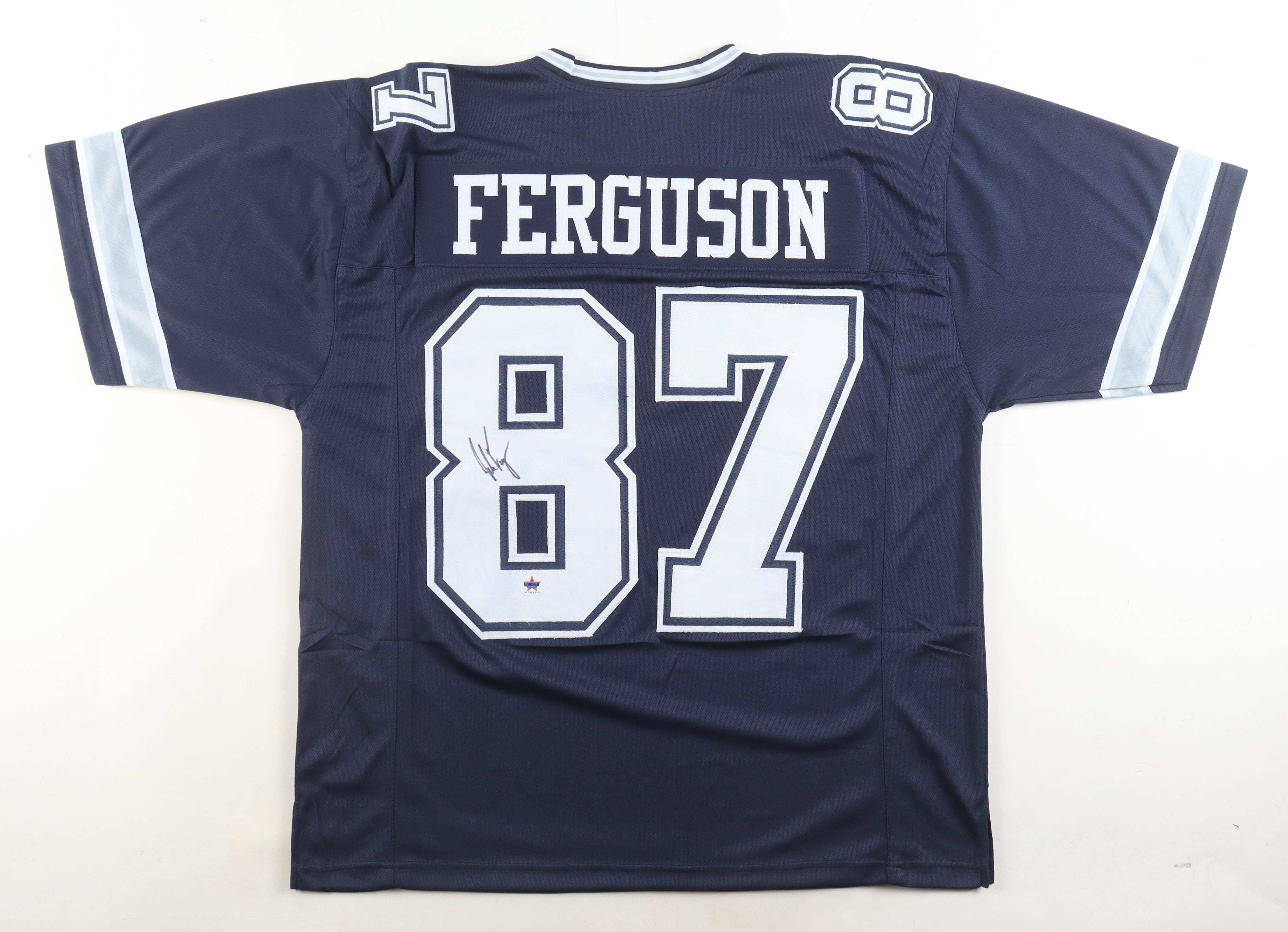 Custom jersey with everything sewn on, size XL. Hand-signed by Jake Ferguson. Please note, glue is visible through the reverse number.