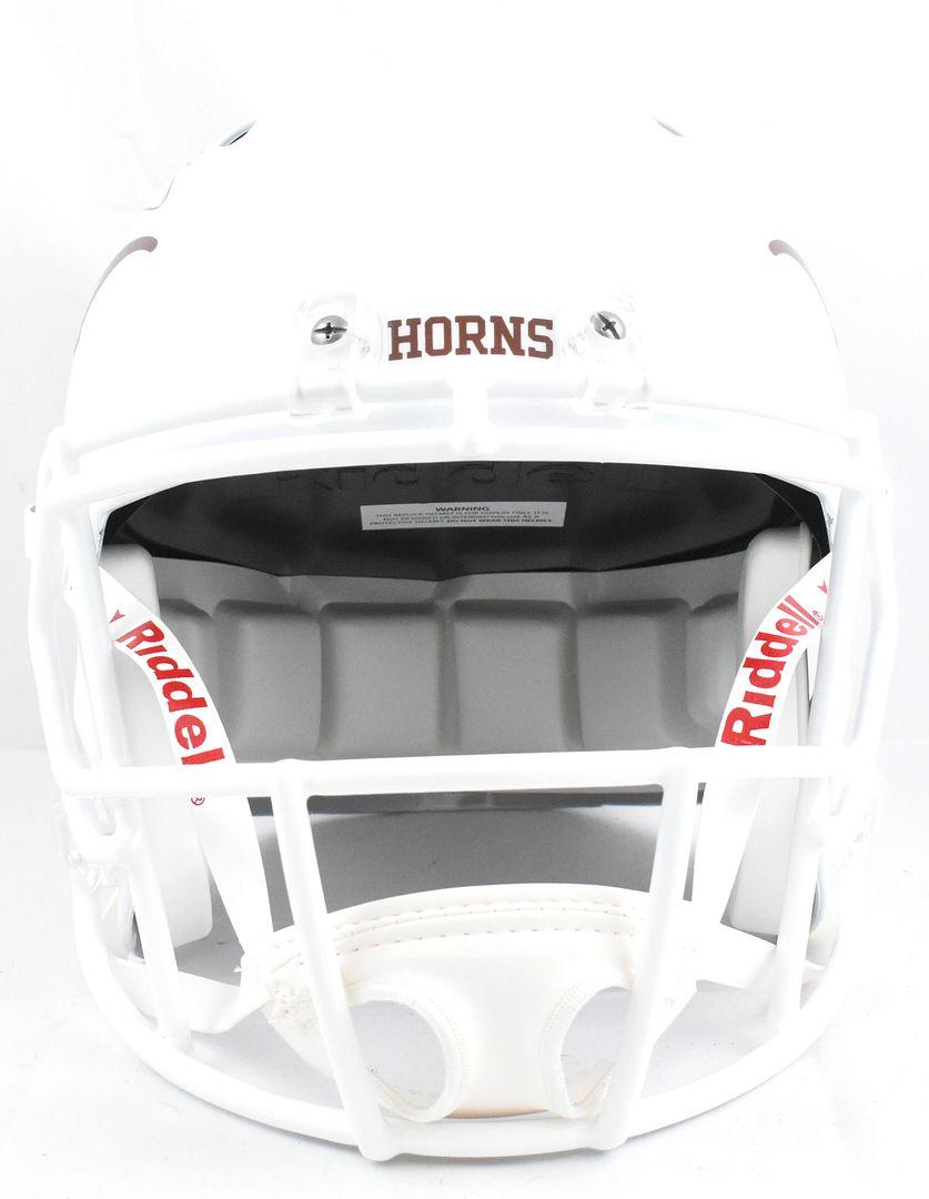 Riddell Texas Longhorns full-size speed replica helmet has been hand-signed by Colt McCoy.