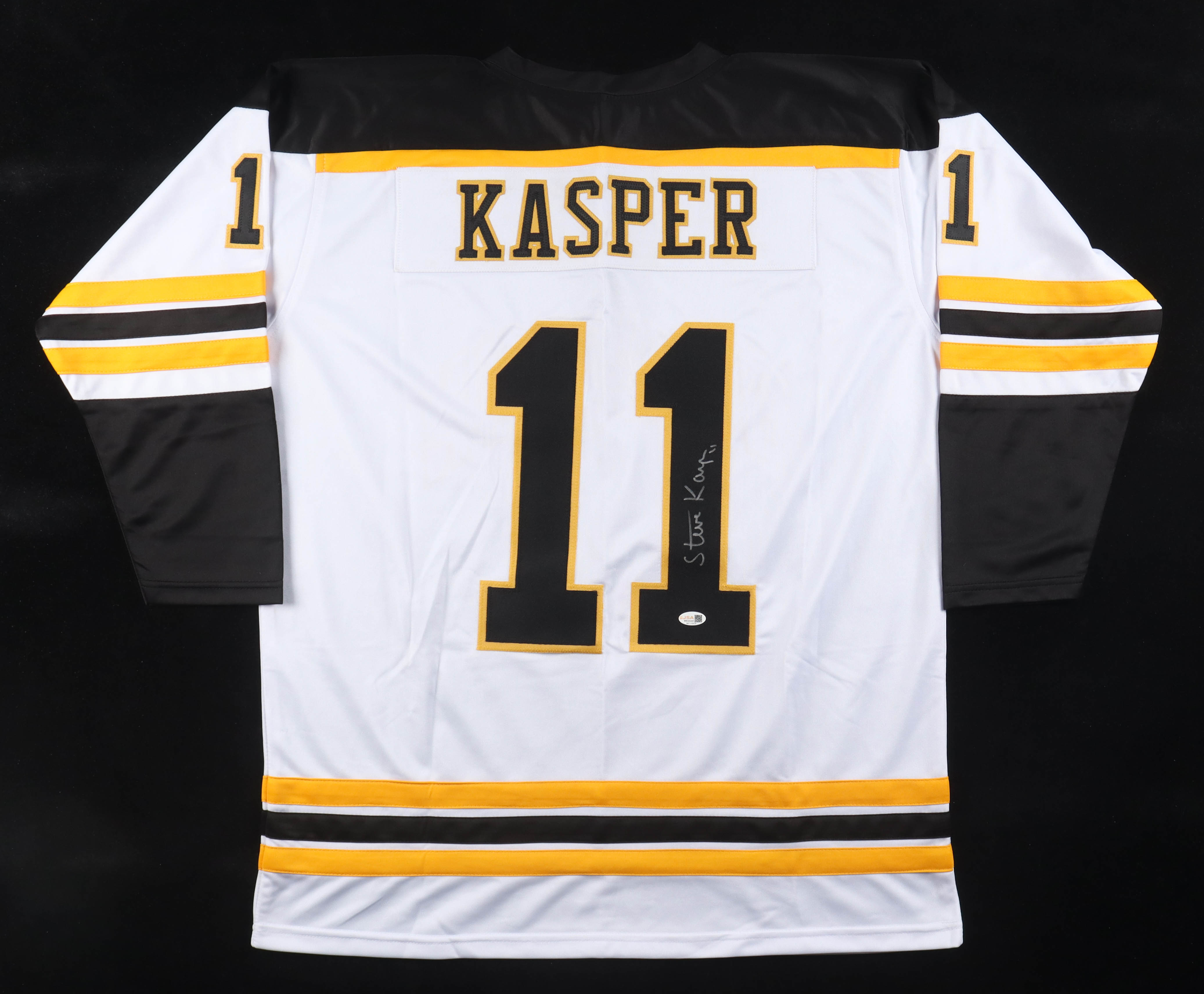 Custom jersey with everything sewn on, size XL. Hand-signed by Steve Kasper.