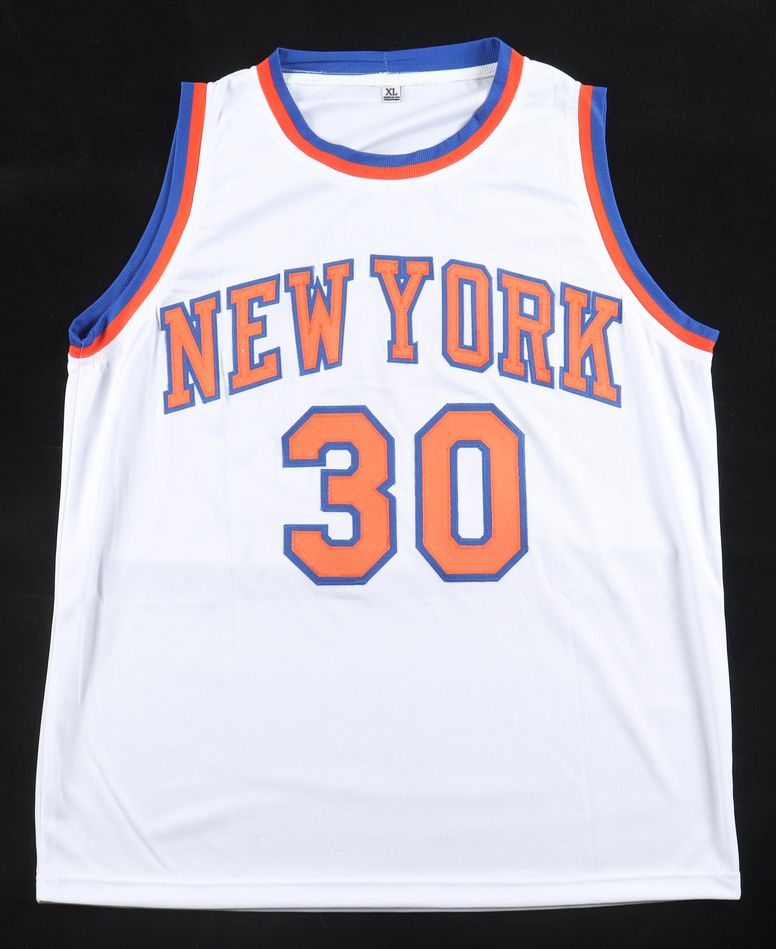 Custom jersey with everything sewn on, size XL. Hand-signed and inscribed by Bernard King (HOF).