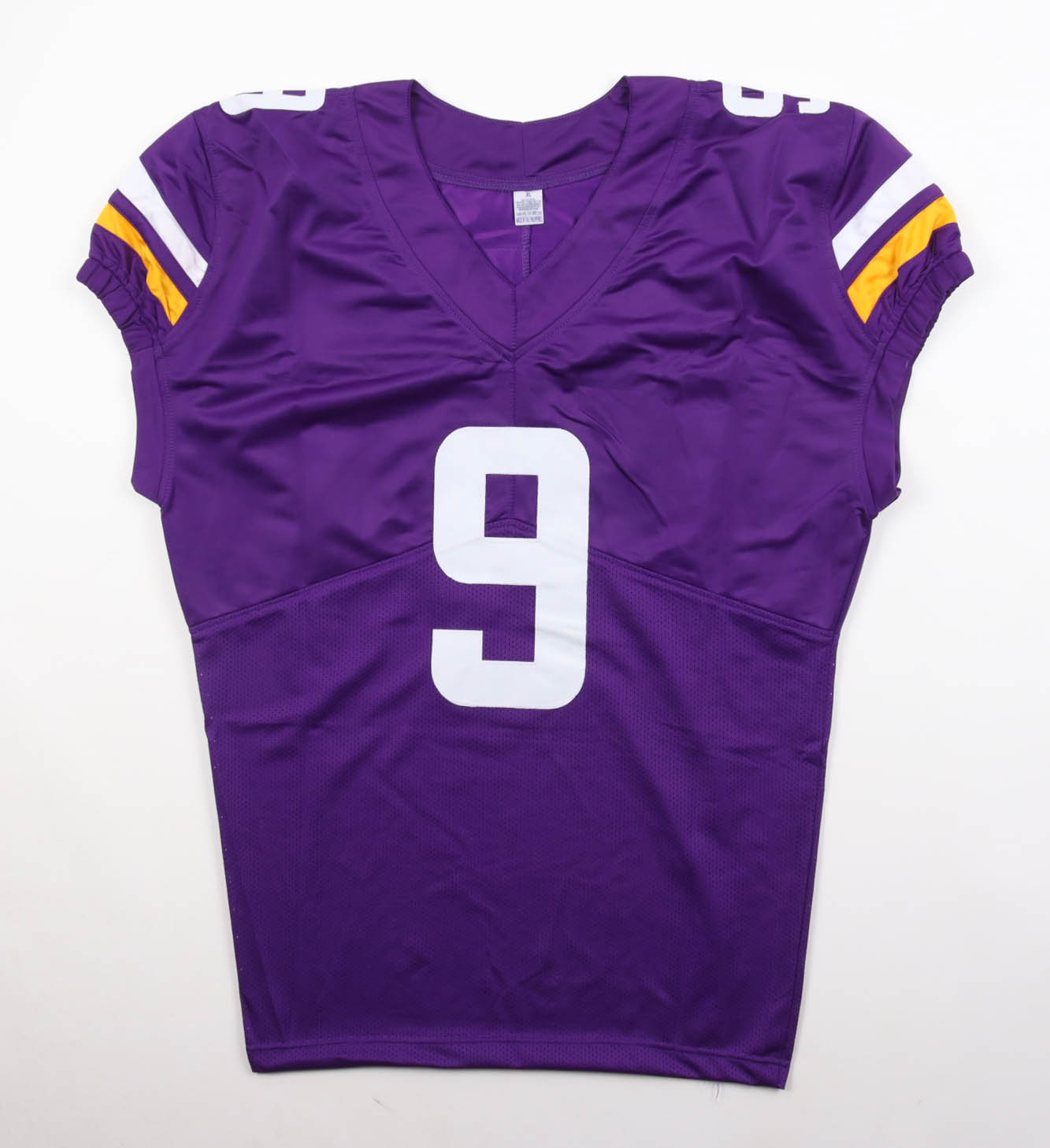 Custom jersey with everything pressed on, size XL. Hand-signed by J.J. McCarthy.