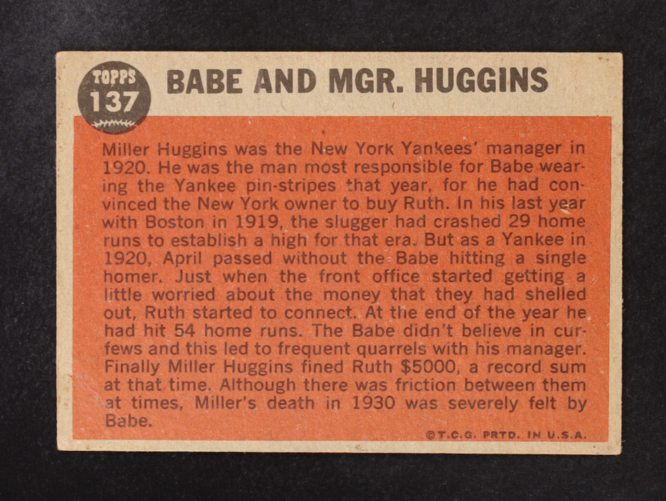 Babe Ruth 1962 Topps Babe Ruth Special #137