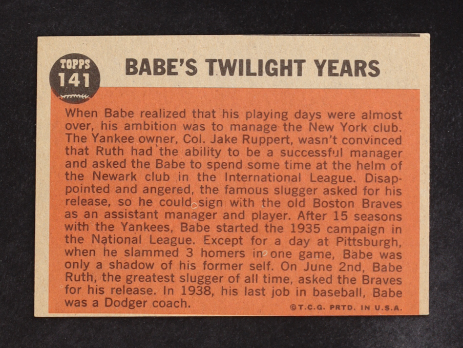 Babe Ruth 1962 Topps Babe Ruth Special #141
