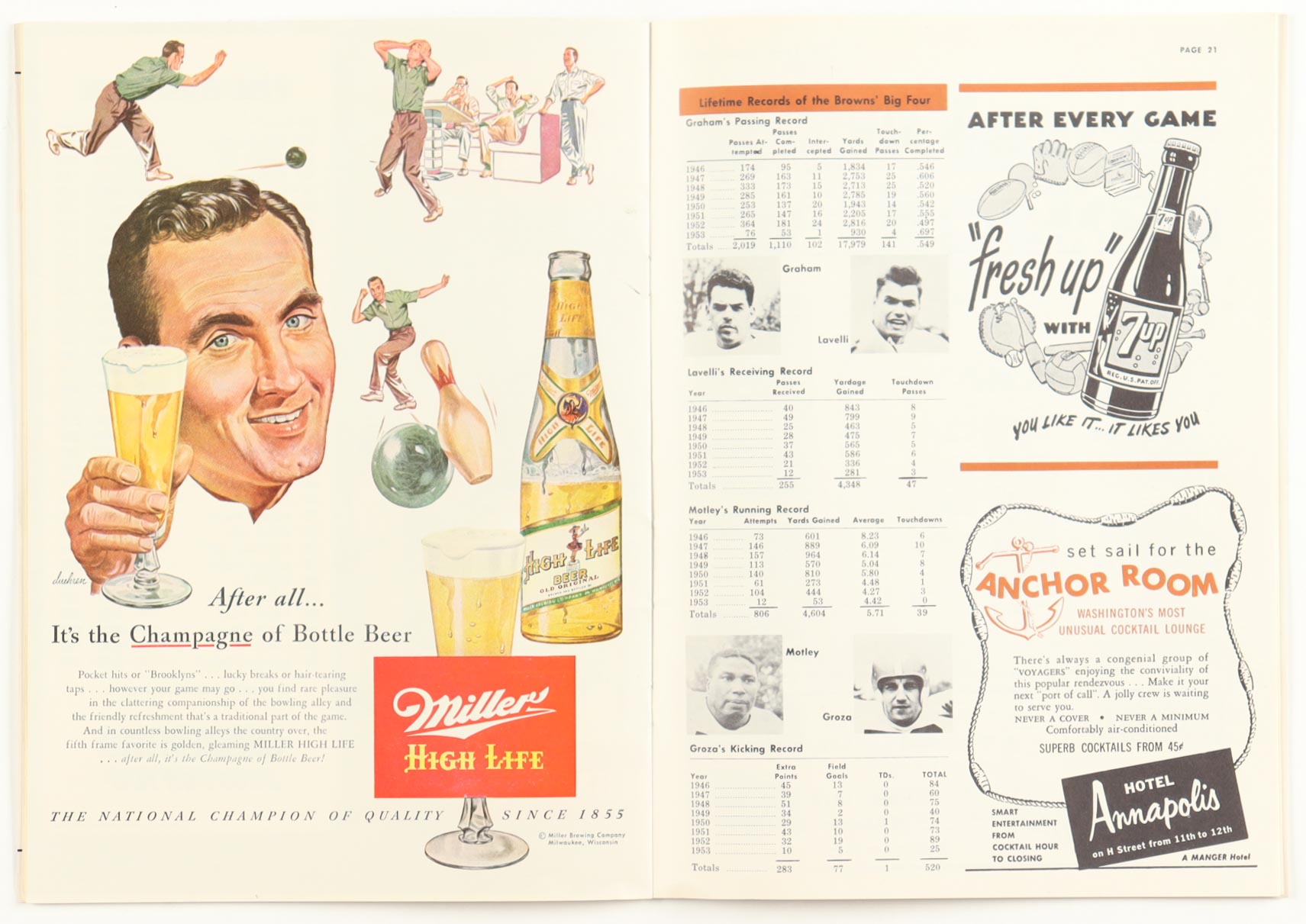 1953 Washington Redskins vs Cleveland Browns Vintage Game Program. Please refer to photos for more details.