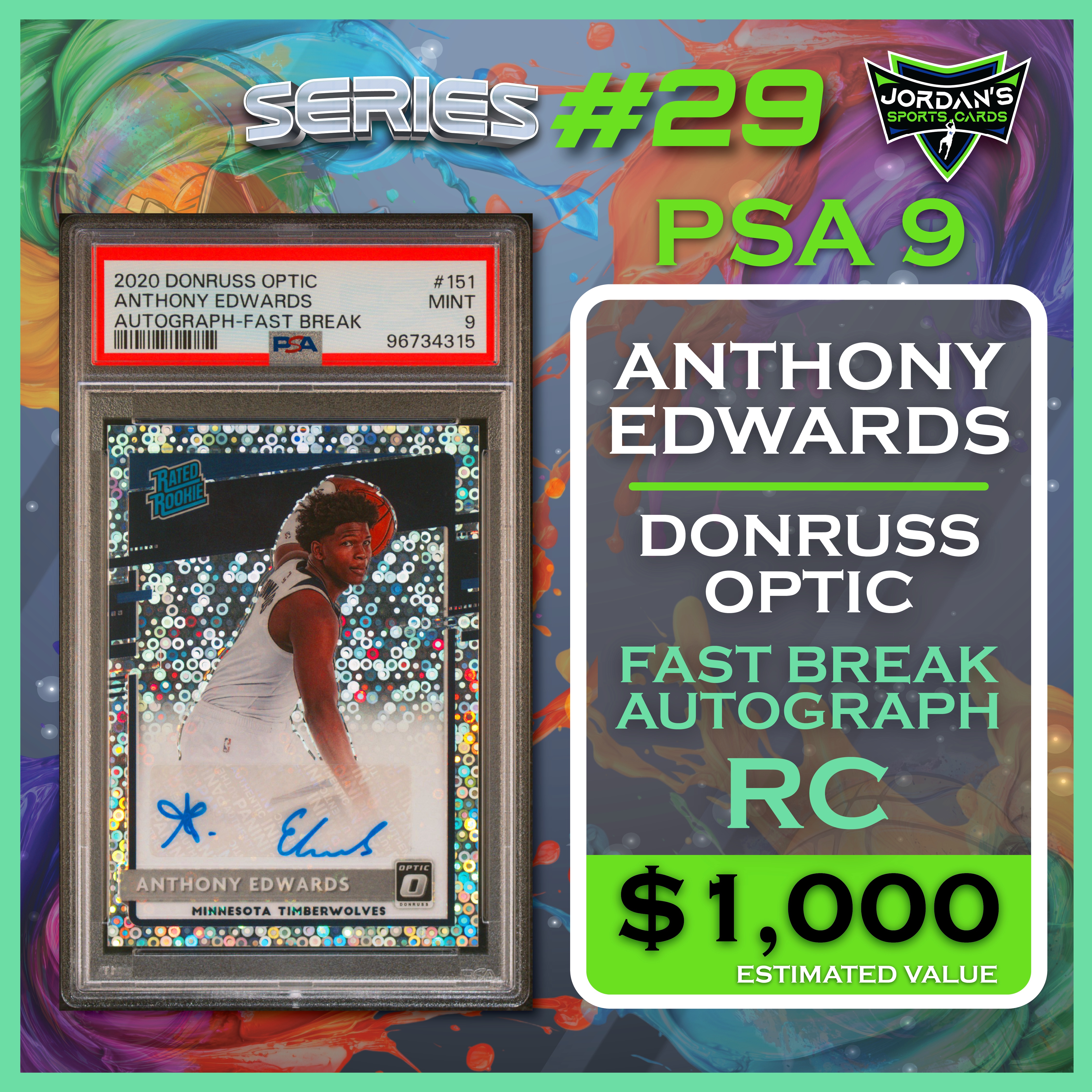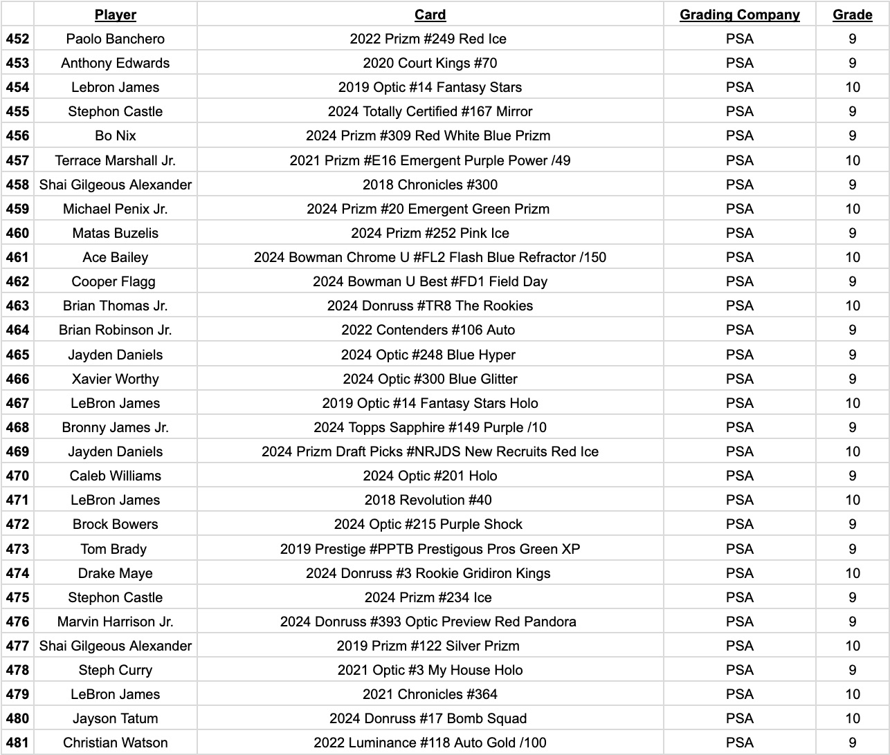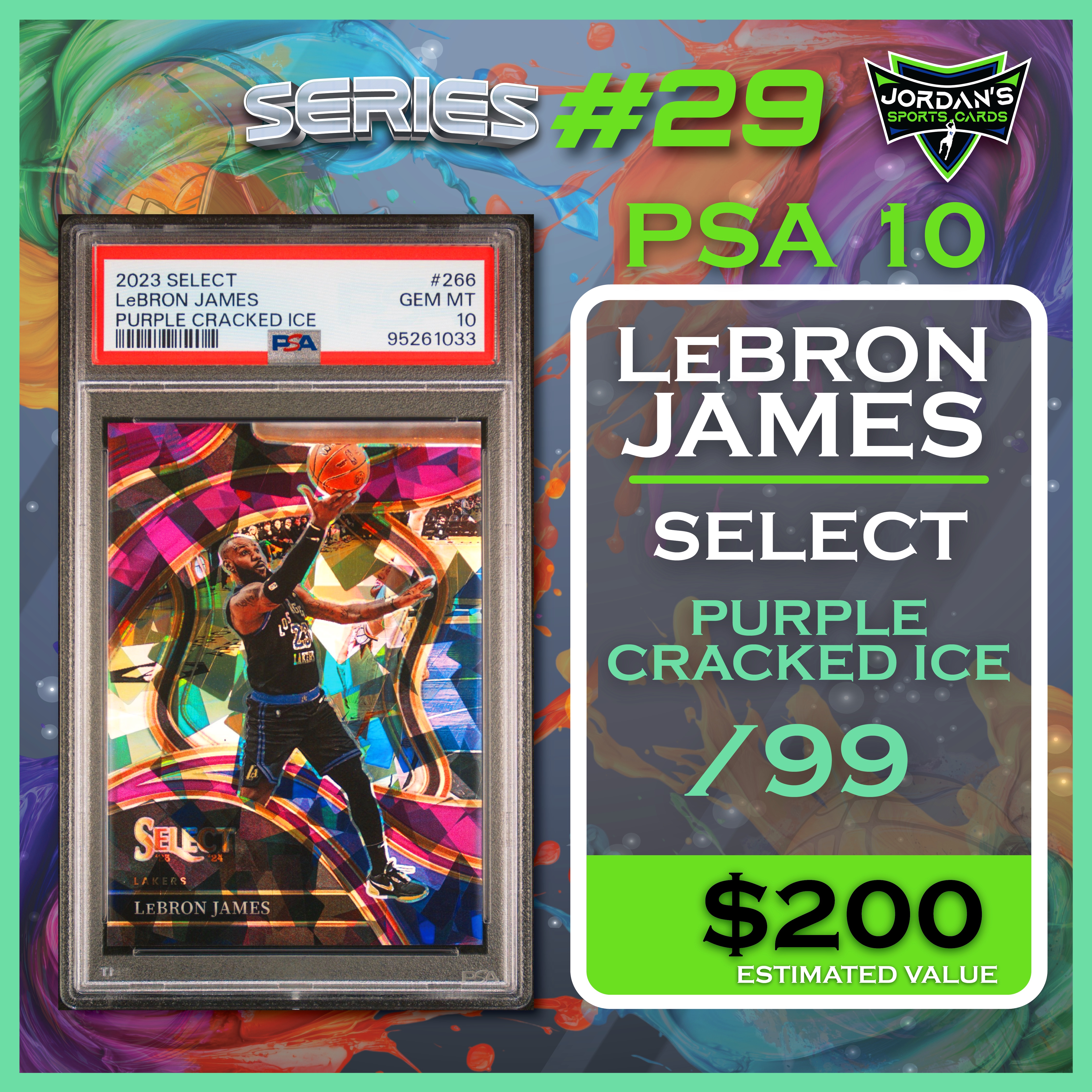 Jordan’s Sports Cards Presents Platinum Quest Series 29: The Sports Card Pack Mystery Pack with (1) PSA or BGS graded baseball, basketball, or football card, including big hits from superstars and hall of famers across all three major sports (600 cards total).