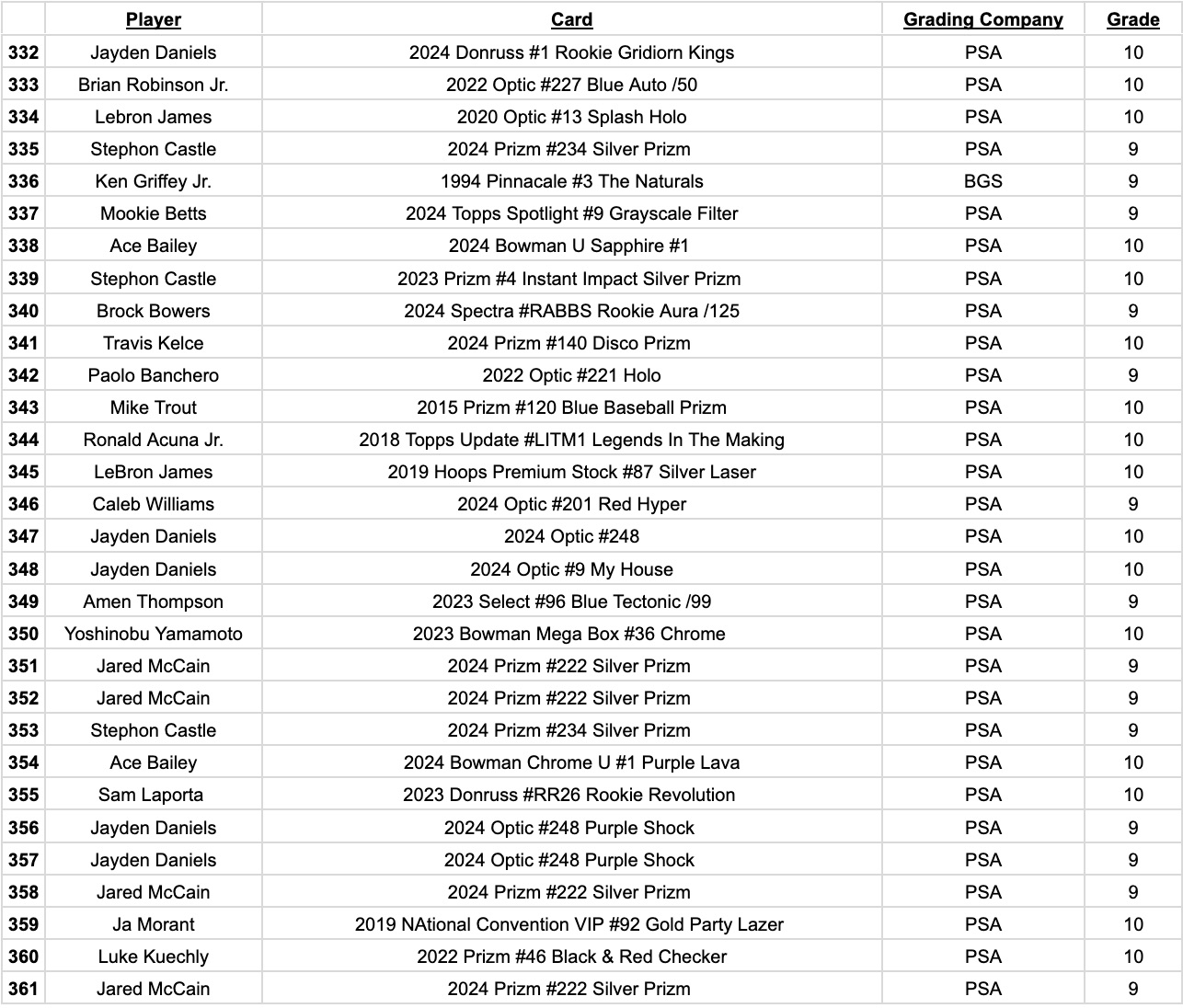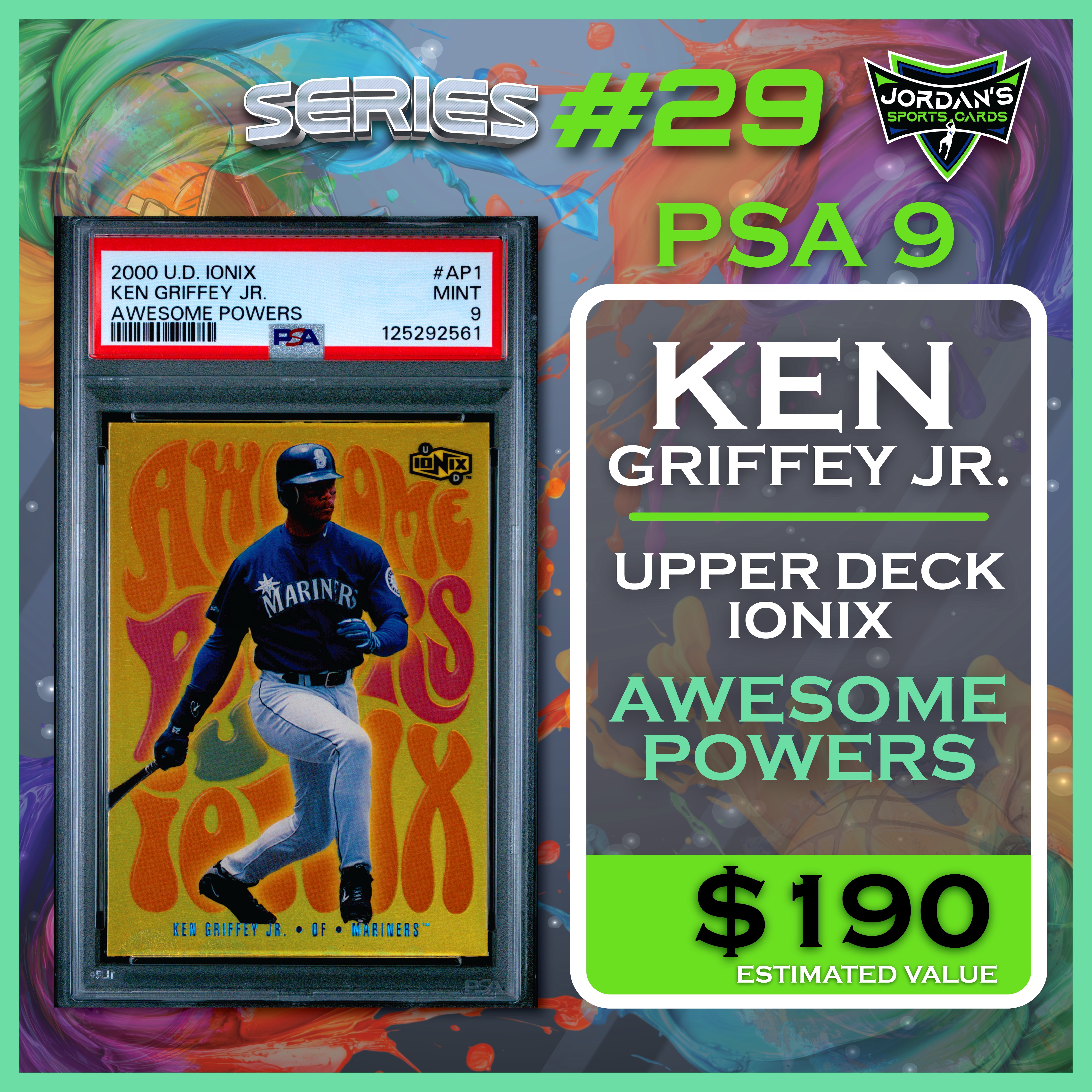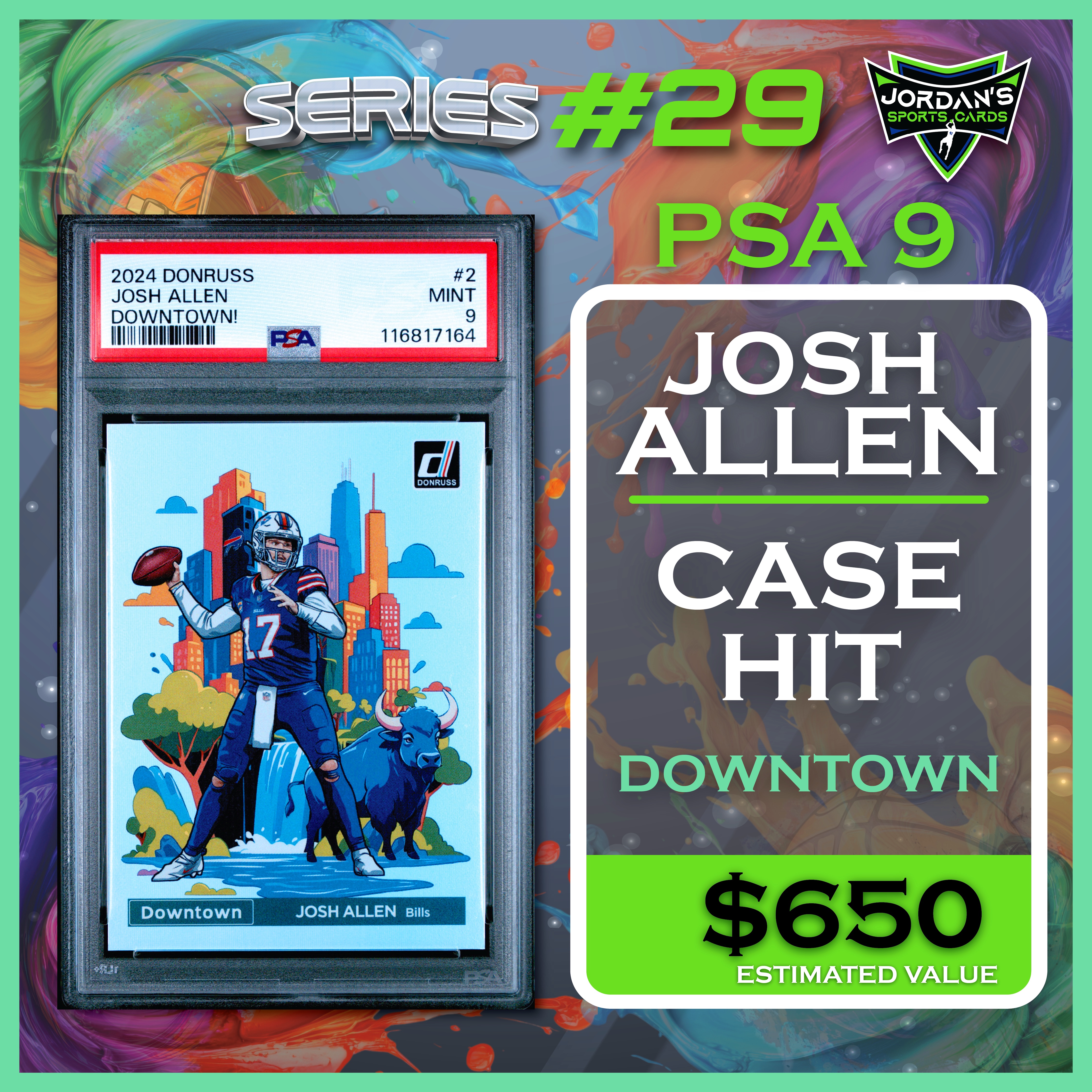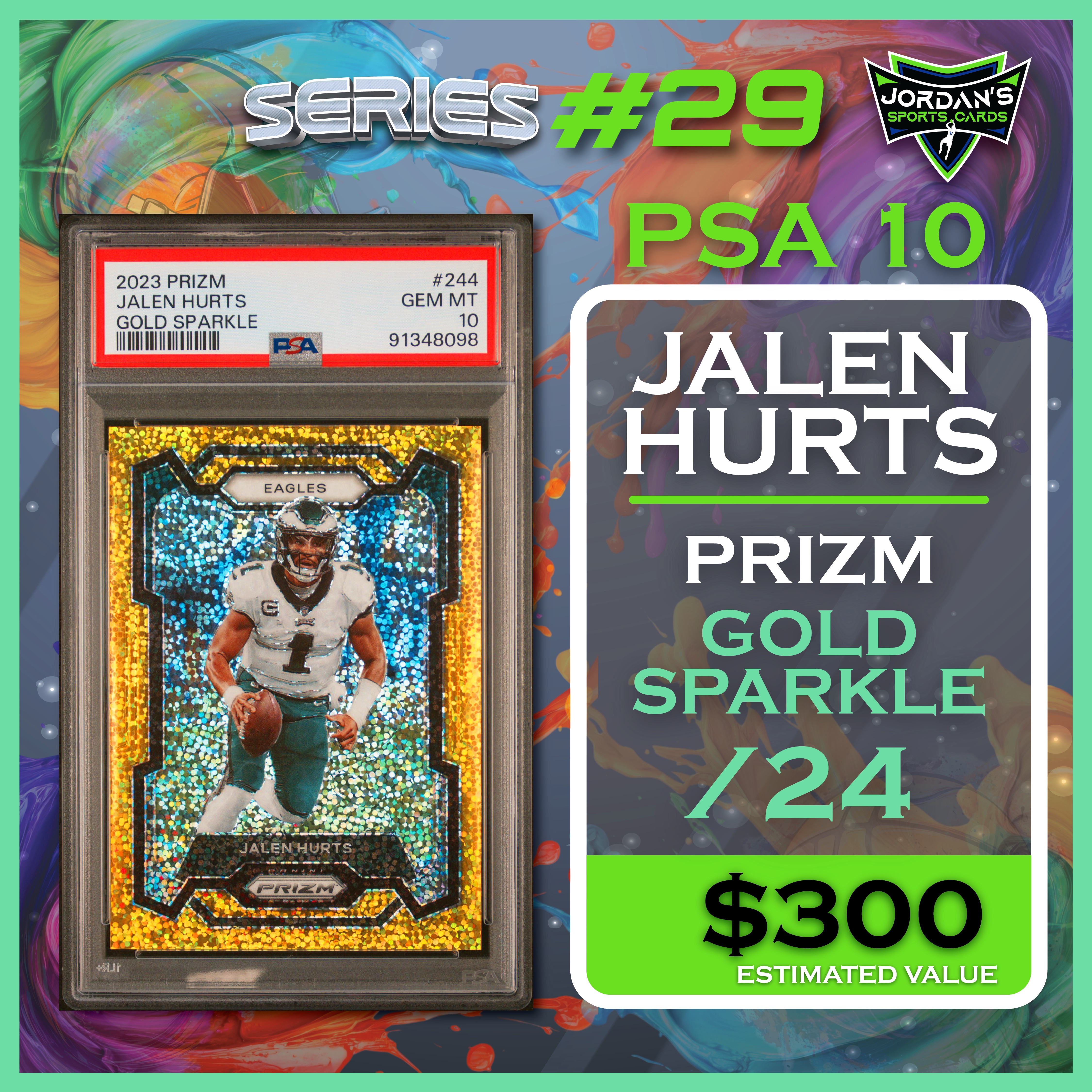 Jordan’s Sports Cards Presents Platinum Quest Series 29: The Sports Card Pack Mystery Pack with (1) PSA or BGS graded baseball, basketball, or football card, including big hits from superstars and hall of famers across all three major sports (600 cards total).