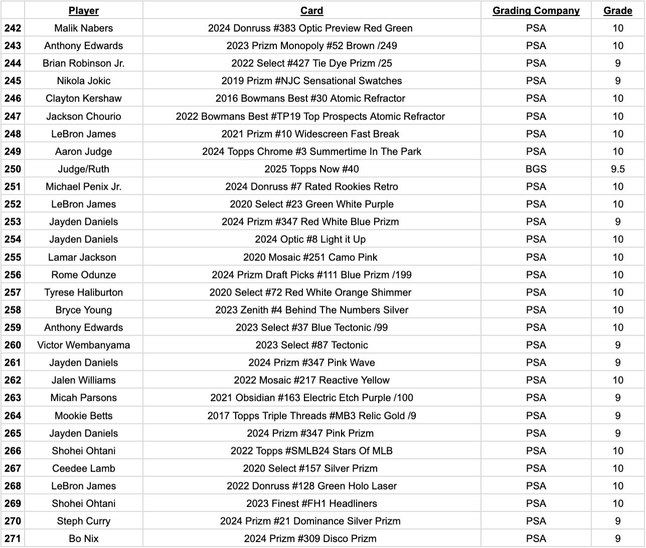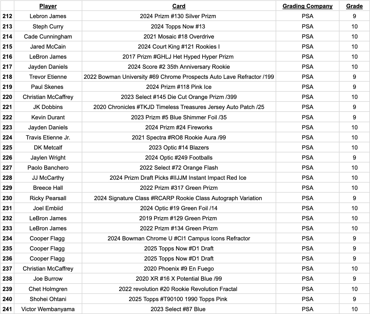 Cards to chase include Michael Jordan, Shohei Ohtani, Tom Brady, Patrick Mahomes, Kobe Bryant, LeBron James, Mickey Mantle, Josh Allen, Stephen Curry, Aaron Judge, Victor Wembanyama, Paul Skenes, Joe Burrow, Mike Trout, Kevin Durant, Allen Iverson, Luka Doncic, Ken Griffey Jr., Anthony Edwards, Jayson Tatum, Magic Johnson, Larry Bird, Peyton Manning, and more…