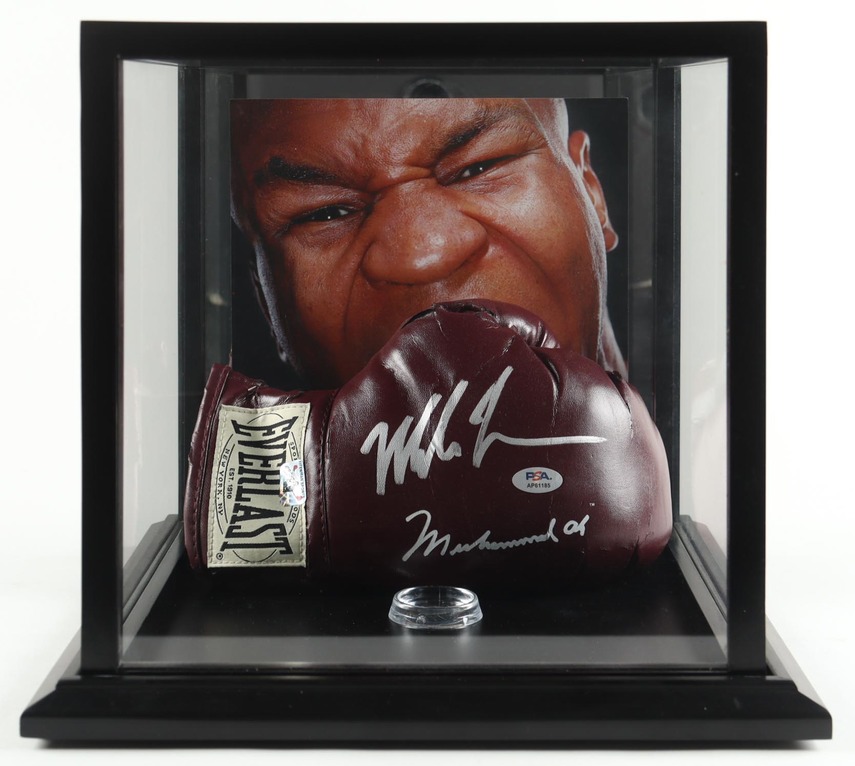 Mike Tyson Signed 1960 Everlast "Jack Dempsey" Model Boxing Glove With Display Case & Photo (PSA & Tyson)