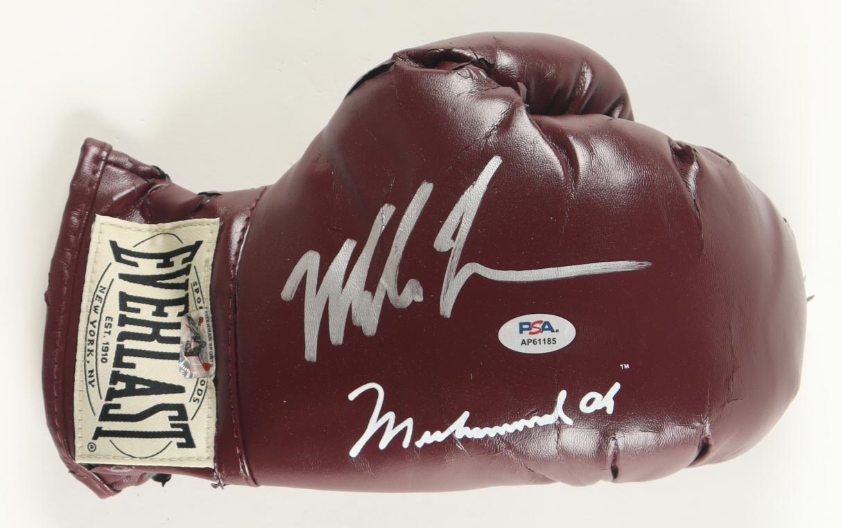 Vintage 1960 Everlast Jack Dempsey Model Boxing Glove has been hand-signed by Mike Tyson (HOF). Display case is included as shown. Please note Muhammad Ali signature is a facsimile. Please refer to photos for more details.