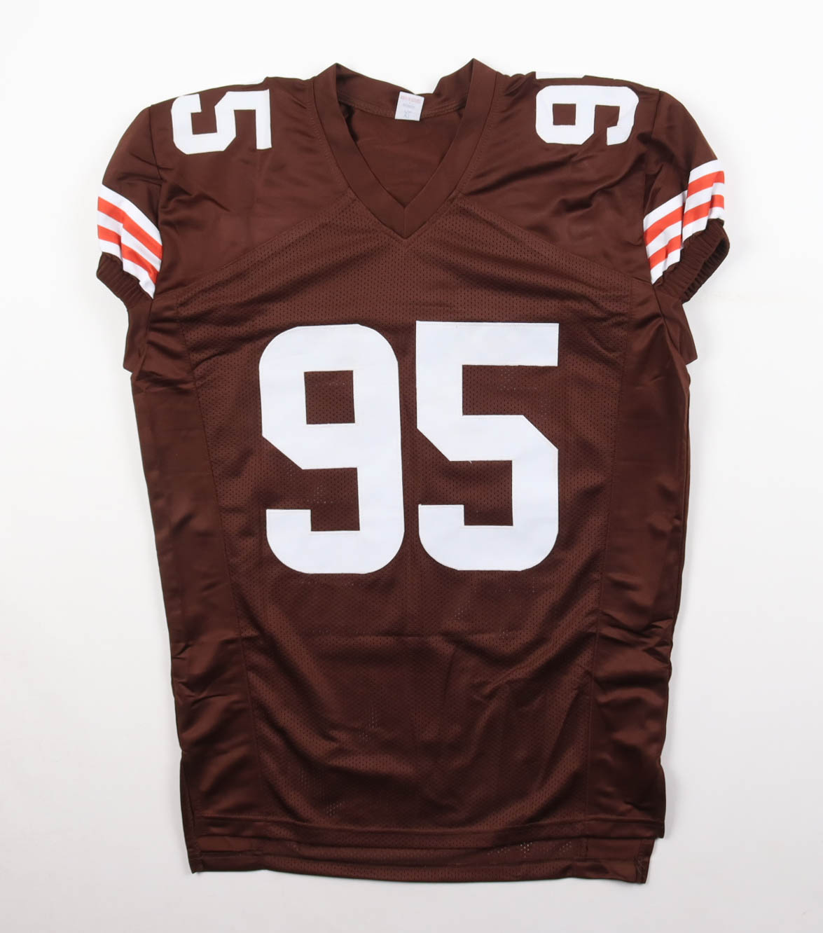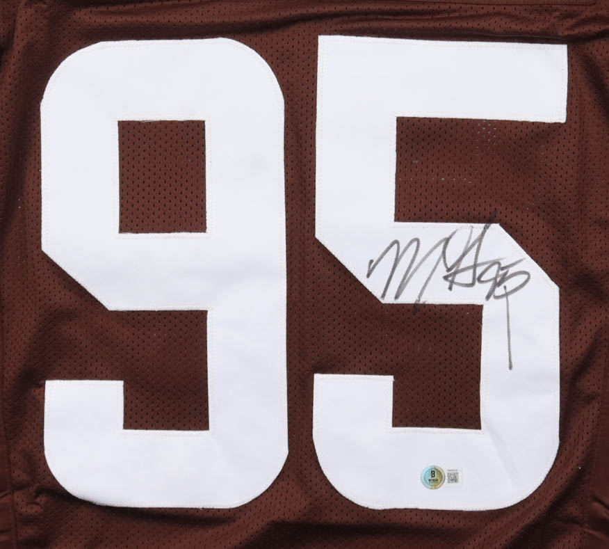 Custom jersey with everything sewn on, size XL. Hand-signed by Myles Garrett.
